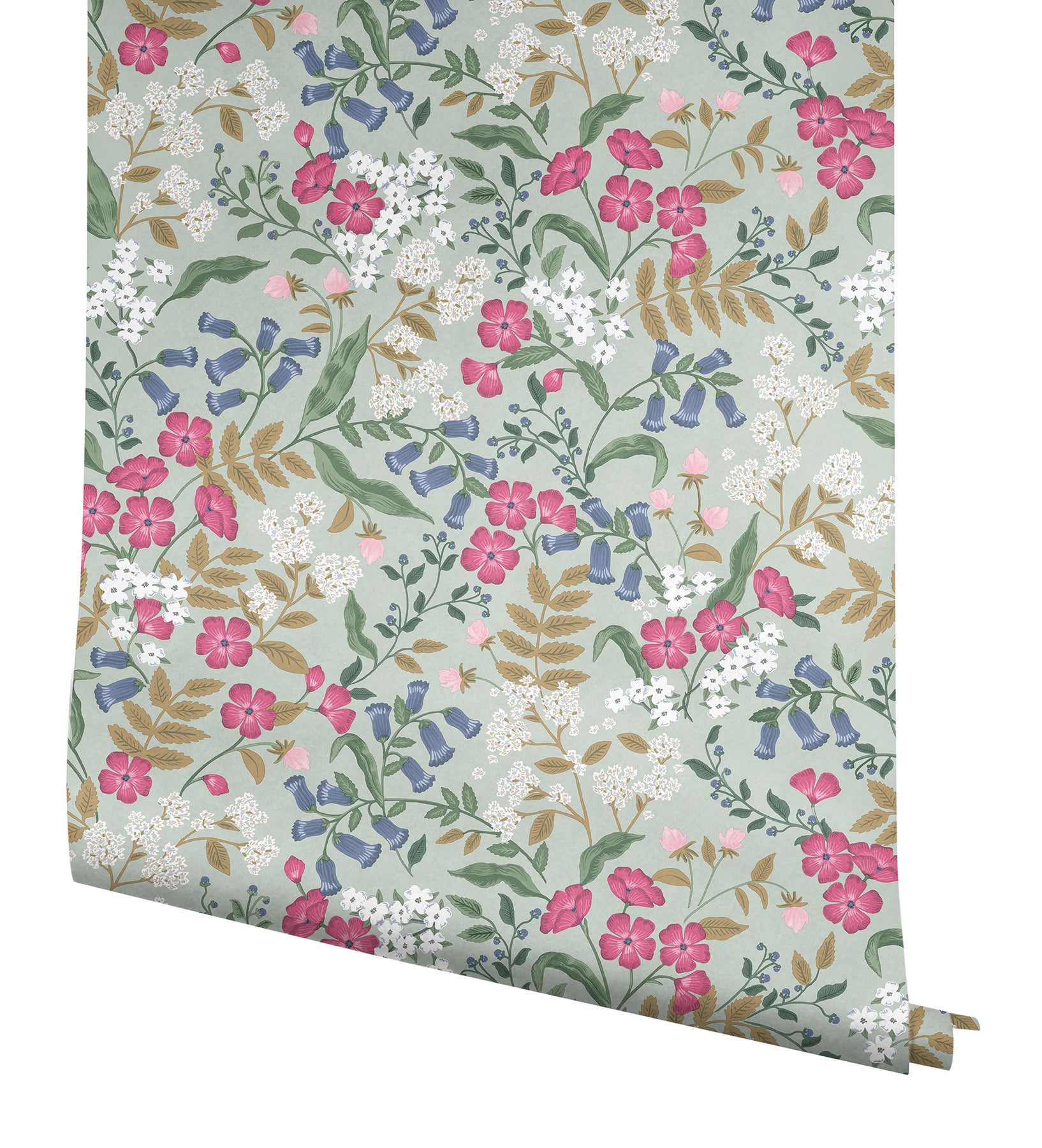 York Wallcoverings Peel and Stick Rifle Paper 3 Sweetbrier Mint Peel and Stick Wallpaper Whimsical Florals and Flowers Greens Wallpaper - PSW1545RL