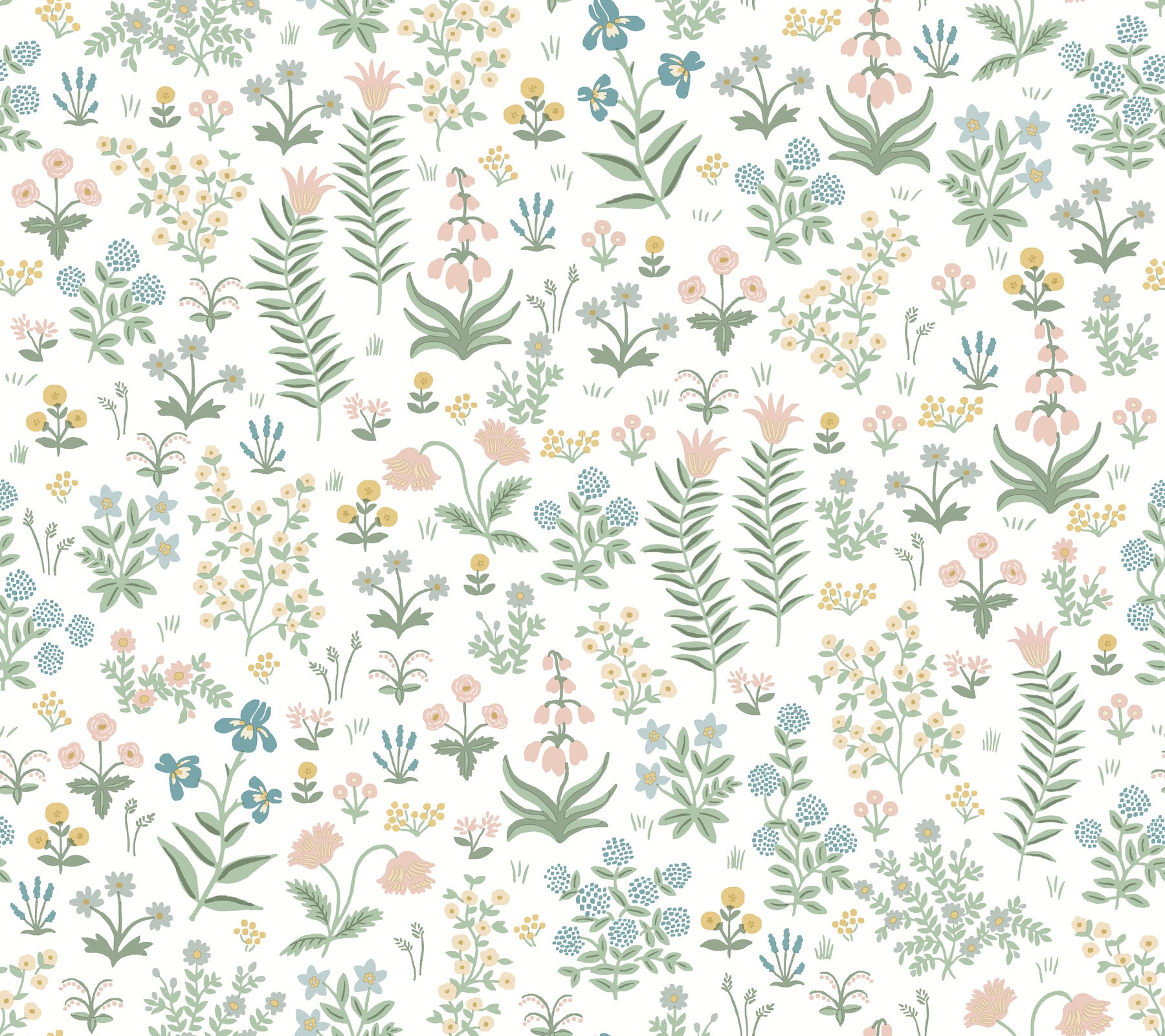 Use:Menagerie Garden's sweet, illustrative styling adds another layer of charm to the assorted wildflowers inked in blush, sage, pale yellow, and blue on white. This Menagerie Garden Peel and Stick Wallpaper measures 27 inches wide by 20 feet long, measuring approximately 45 square feet per roll. The Premium Peel and Stick collection from Rifle Paper Co. is a bright and beautiful way to make a statement at home. Featuring their signature florals, elegant linework, and charming illustrations, these wallcoverings are designed to bring unexpected beauty into the real world.
