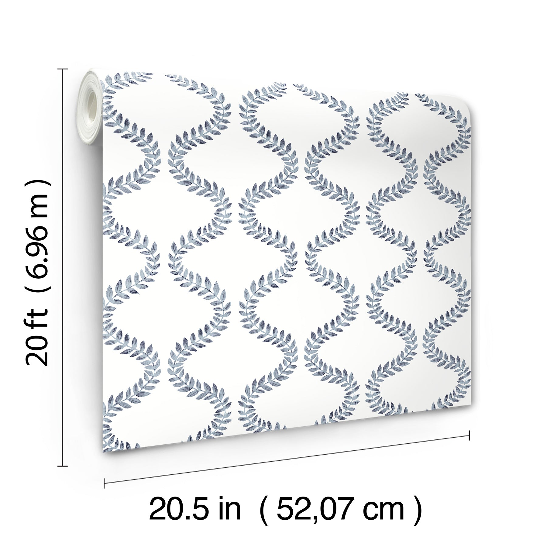 Use:Illustrations of winding, leafy vines in shades of blue add a charming touch to timeless, ogee curves. This Florentine Premium Peel + Stick Wallpaper measures approximately 20.5 inches wide by 20 feet long, measuring approximately 34.2 square feet per roll. Mirth Studio's delightful, hand-painted stylings make their debut on peel + stick wallpaper with this whimsical collection of botanical and bohemian designs.