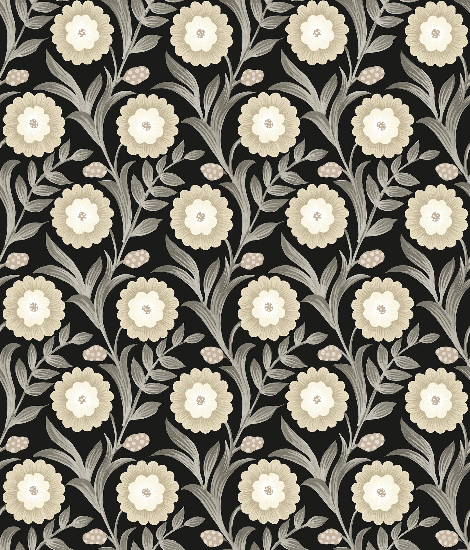York Wallcoverings Mirth Studios Lillian Black Floral Vine Peel and Stick Wallpaper Farmhouse Florals and Flowers Beiges Wallpaper - PSW1581RL