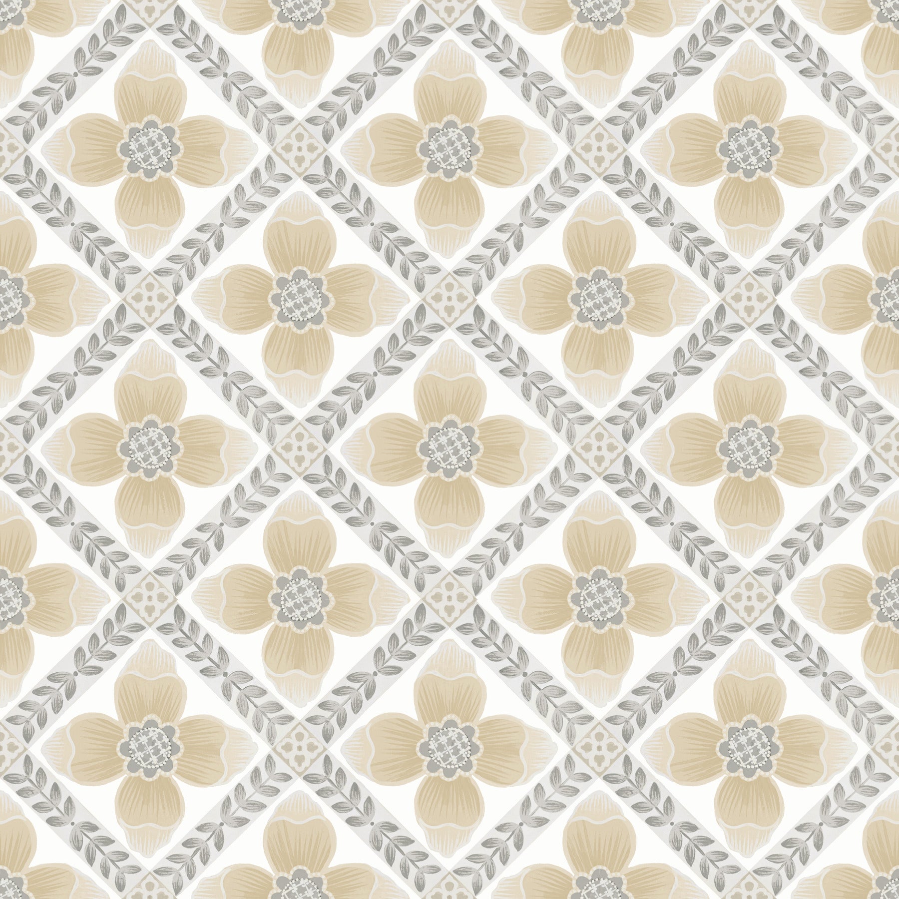York Wallcoverings Mirth Studios Mimi Neutral Quilted Floral Peel and Stick Wallpaper Farmhouse Florals and Flowers Beiges Wallpaper - PSW1586RL