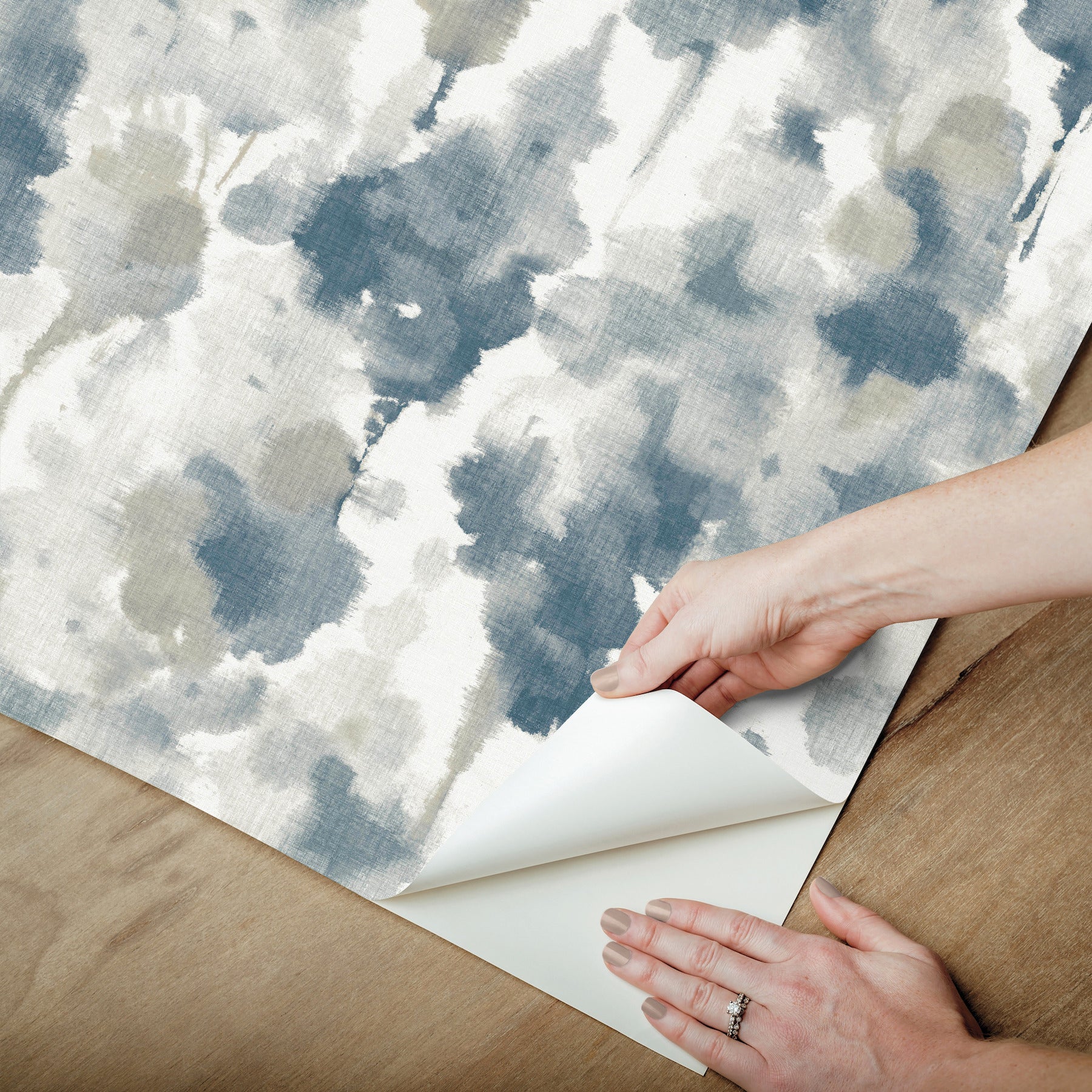 Use:Soft colors emerge to shape a watercolor illusion of the natural landscape in pattern Mirage. Seen here in a palette of blue, grey, and white. This Mirage Peel + Stick Wallpaper measures approximately 27 inches wide by 20 feet long, measuring approximately 45 square feet per roll. Candice Olson?s celebrated signature of current yet timeless design inspires these popular additions to her Premium Peel + Stick product offering. This is Simply Candice.