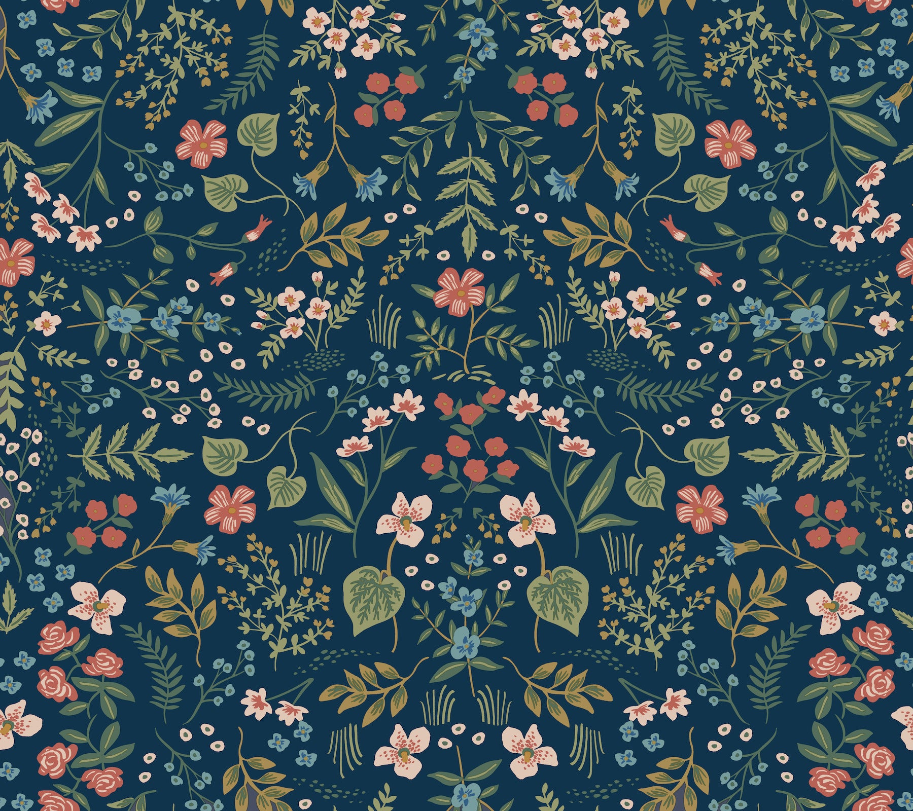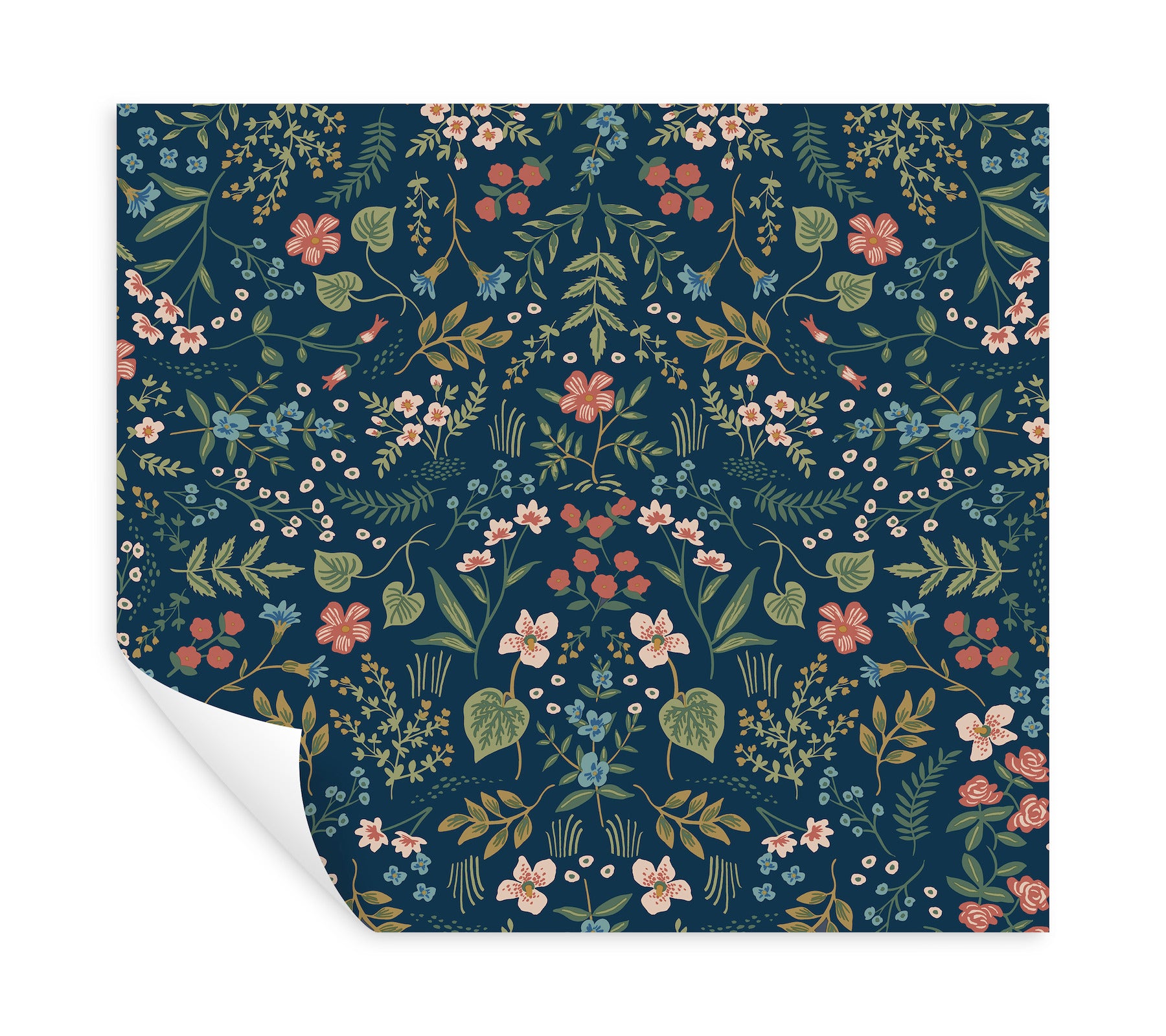 York Wallcoverings Rifle Paper Co P+S 4th Edition Wildwood Navy Peel and Stick Wallpaper Farmhouse Florals Blues Wallpaper - PSW1622RL