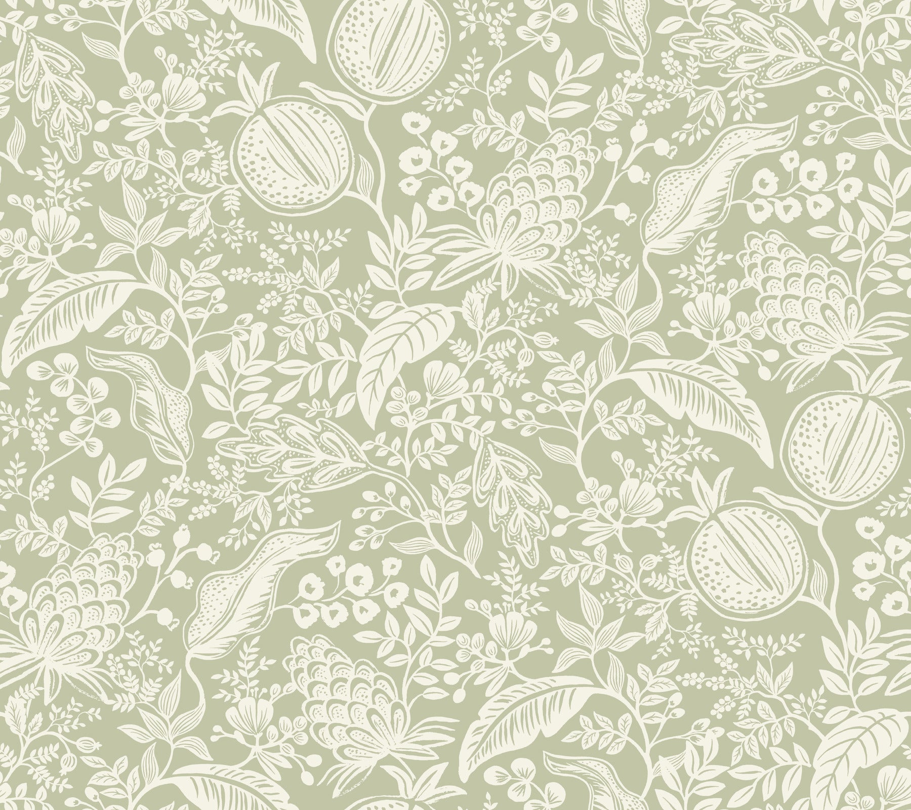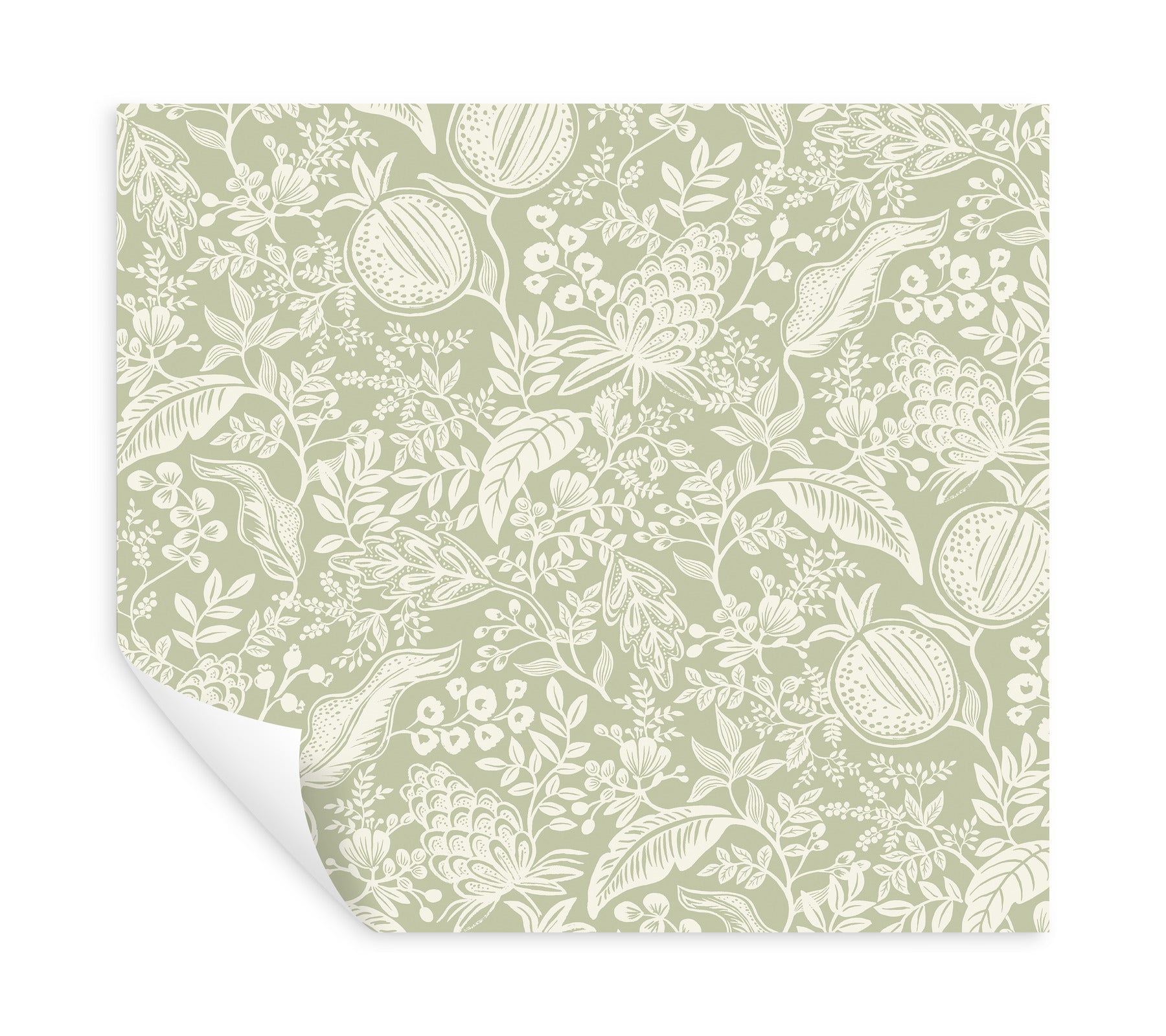 York Wallcoverings Rifle Paper Co P+S 4th Edition Pomegranate Pistachio Peel and Stick Wallpaper Farmhouse Botanical Greens Wallpaper - PSW1630RL