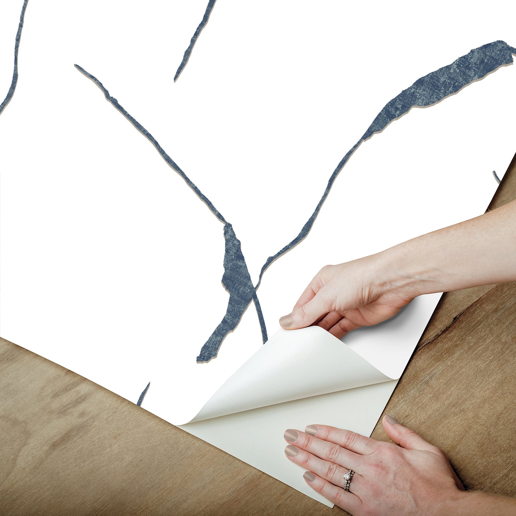 Use:Ivory Coast's artistic etchings are shaped like splashes of liquid metal detailed with the hammered and lustrous finishes of their solid forms. Seen here with dark blue and platinum markings against white. This Ivory Coast Premium Peel + Stick Wallpaper measures approximately 27 inches wide by 20 feet long, measuring approximately 45 square feet per roll. Elevating global traditions with her unique artistic flair, Nikki Chu's collection of premium peel + stick wallpapers offer timeless style finely attuned to modern tastes.