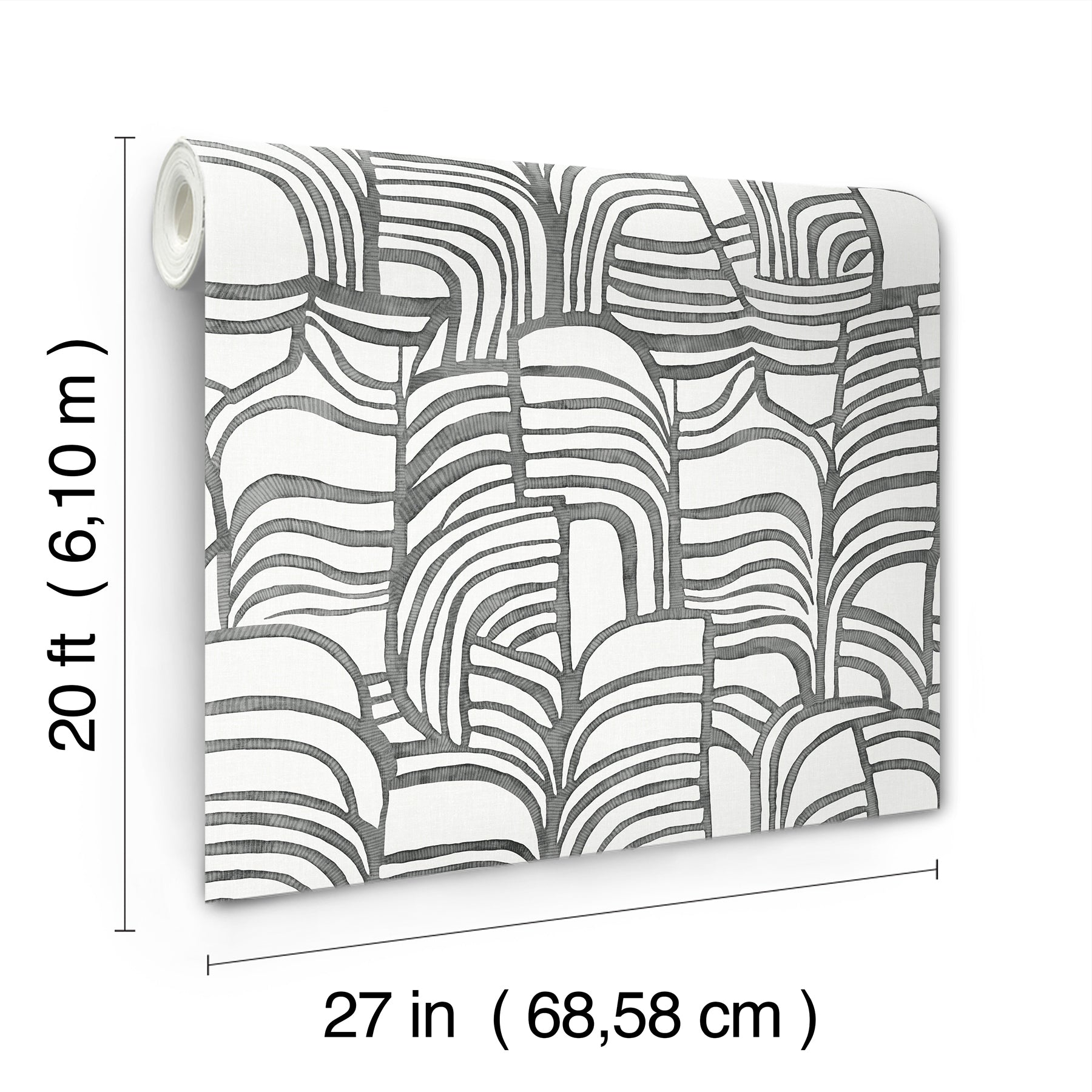 Use:Featherwork is a bold reimagining of plumage, with ribbed lines forming the quill and framing the negative space of the feathery down. Featured here in black against white. This Featherwork Premium Peel + Stick Wallpaper measures approximately 27 inches wide by 20 feet long, measuring approximately 45 square feet per roll. Elevating global traditions with her unique artistic flair, Nikki Chu's collection of premium peel + stick wallpapers offer timeless style finely attuned to modern tastes.