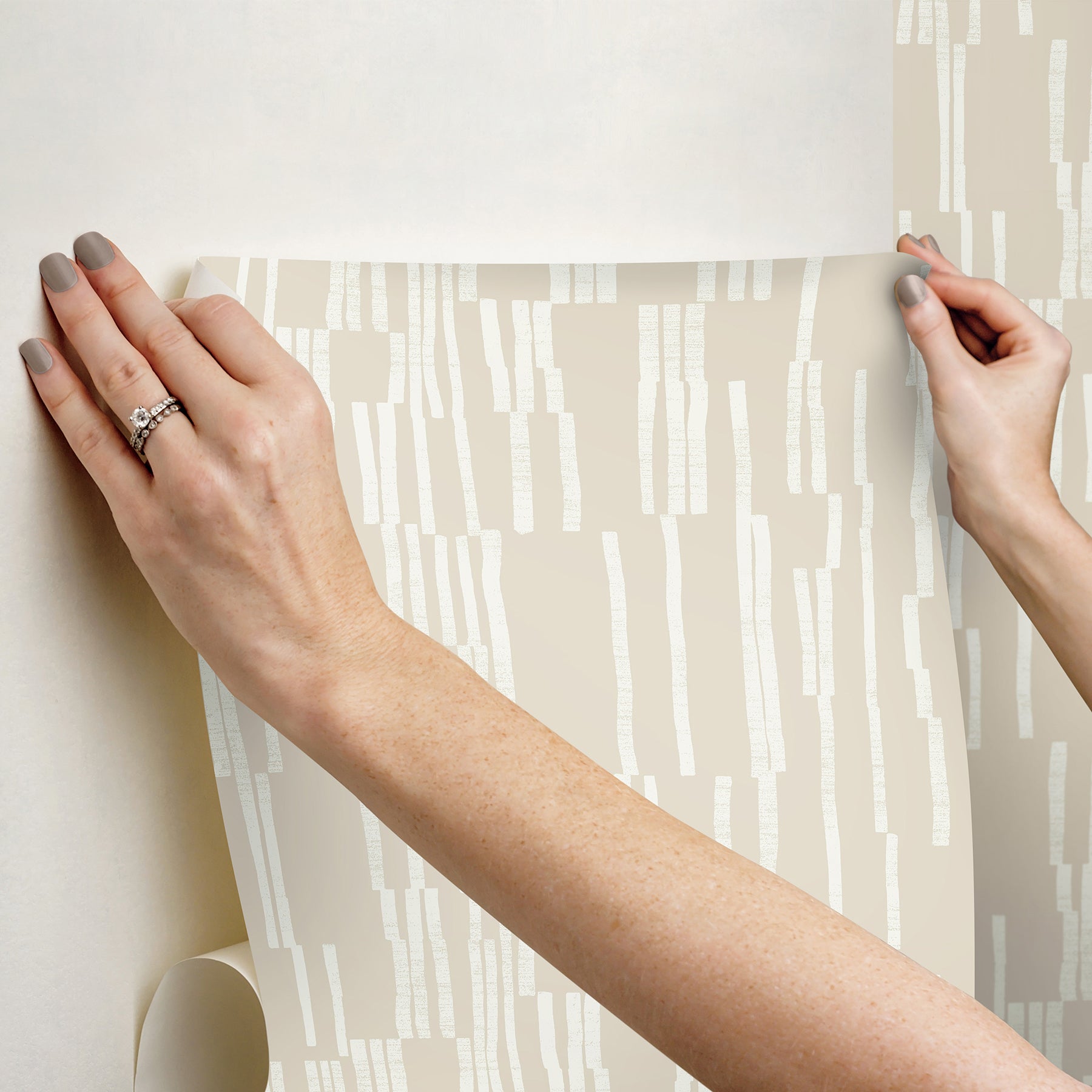 Use:The organic movement and asymmetric placement of design Koso's linework gives a simple motif rich complexity. Featured here in cream against warm beige. This Koso Premium Peel + Stick Wallpaper measures approximately 27 inches wide by 20 feet long, measuring approximately 45 square feet per roll. Elevating global traditions with her unique artistic flair, Nikki Chu's collection of premium peel + stick wallpapers offer timeless style finely attuned to modern tastes.