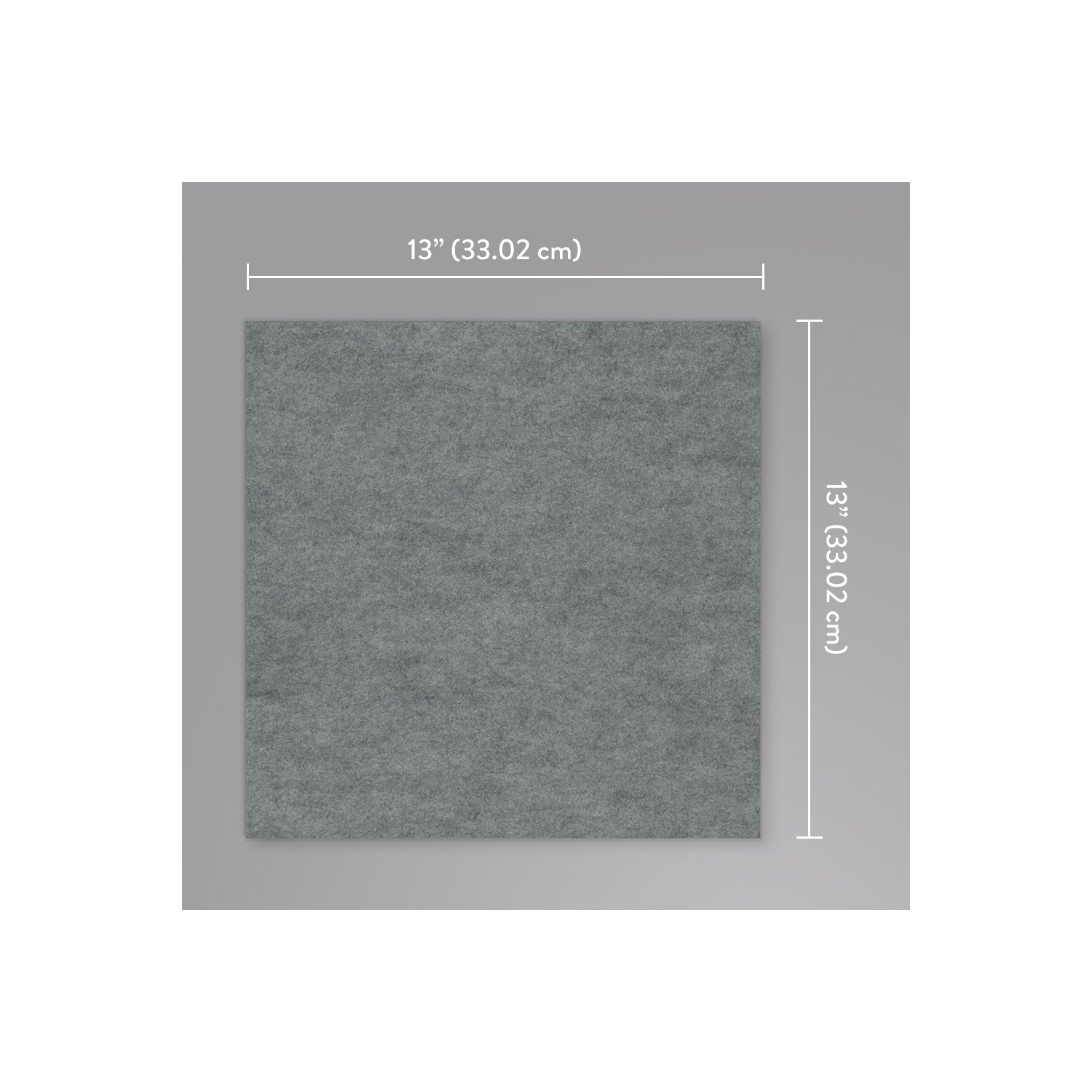 Size : 4 pieces - 13 inches x 13 inches. Covers 4.33 square feet..Easy peel and stick installation: Just remove self-adhesive backing and stick to any smooth flat surface.Repositionable / removes instantly without leaving sticky residue or damage to the walls (even painted walls).Acoustical/Noise reduction properties: Reduce background noise, enhance sound quality and enjoy dramatic acoustic improvement.Made in the USA of 100% recycled plastic bottles.Easily remove dirt or blemishes by gently cleaning with a multi-purpose household cleaner.Ideal for the finished basement, home office, playroom, gym, nurseries, home theaters or anywhere sound control is needed..