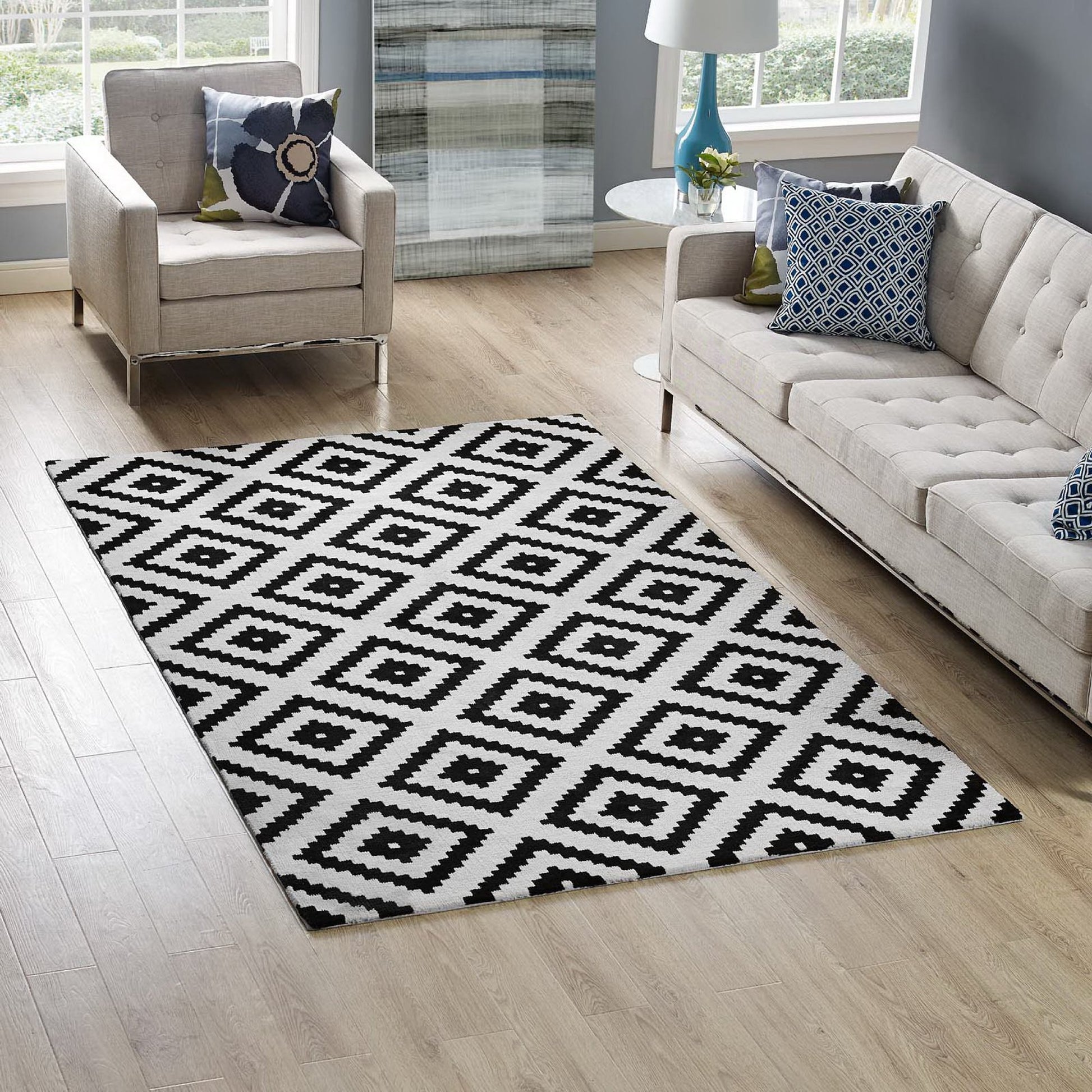 Modway Outlet Alika Abstract Diamond Trellis 5x8 Area Rug by Modway Living Room Rugs Black and White - R-1004A-58
