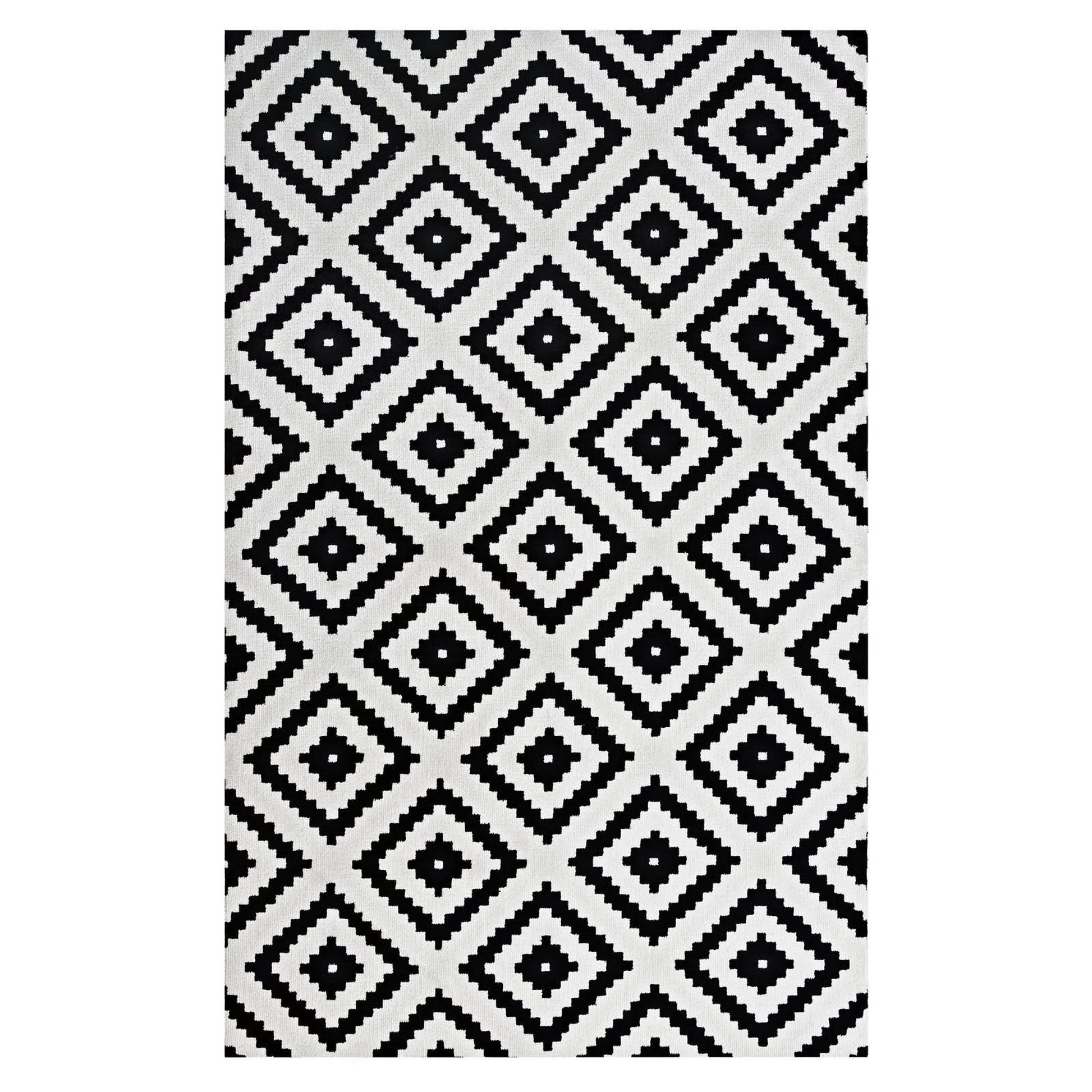 Modway Outlet Alika Abstract Diamond Trellis 8x10 Area Rug by Modway Living Room Rugs Black and White - R-1004A-810