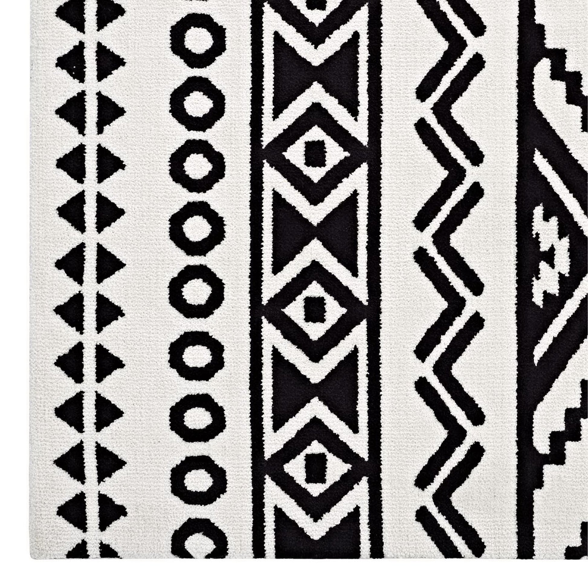 Modway Outlet Haku Geometric Moroccan Tribal 8x10 Area Rug by Modway Living Room Rugs Black and White - R-1010A-810