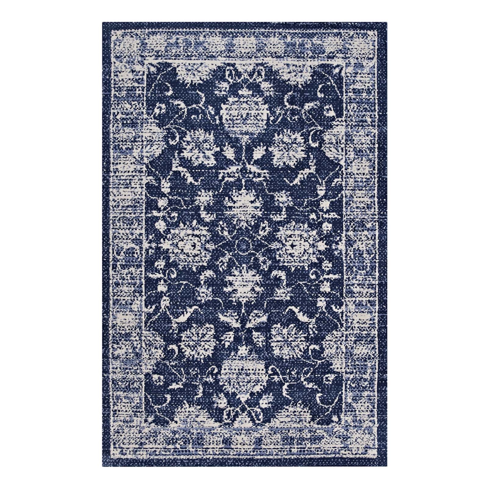 Modway Outlet Kazia Distressed Floral Lattice 5x8 Area Rug by Modway Living Room Rugs Dark Blue and Ivory - R-1020B-58