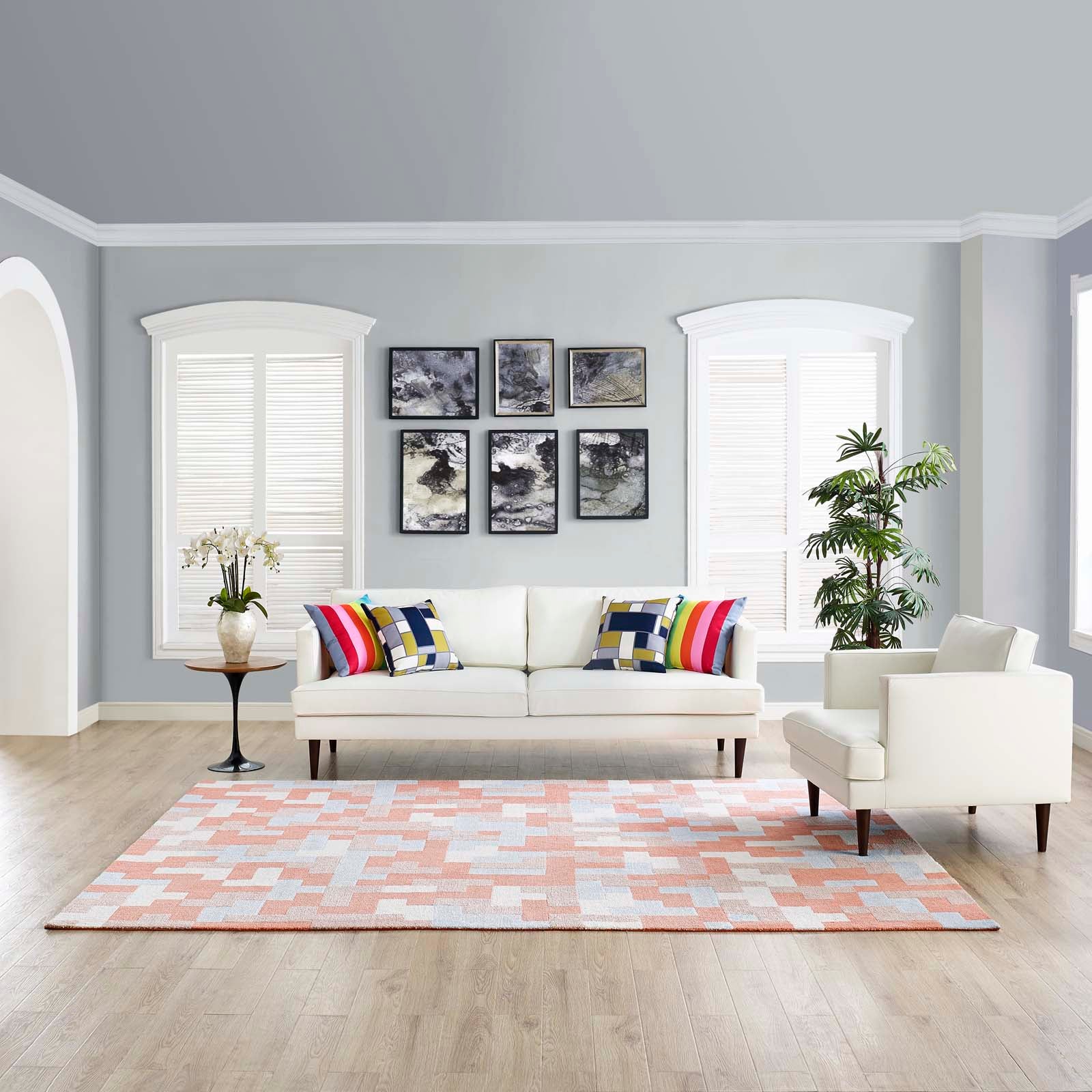 Modway Outlet Andela Interlocking Block Mosaic 8x10 Area Rug by Modway Living Room Rugs Multicolored Coral and Light Blue - R-1022B-810