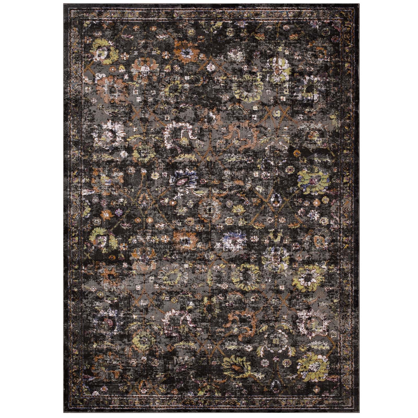 Modway Outlet Minu Distressed Floral Lattice 4x6 Area Rug by Modway Living Room Rugs Black Yellow and Orange - R-1091A-46