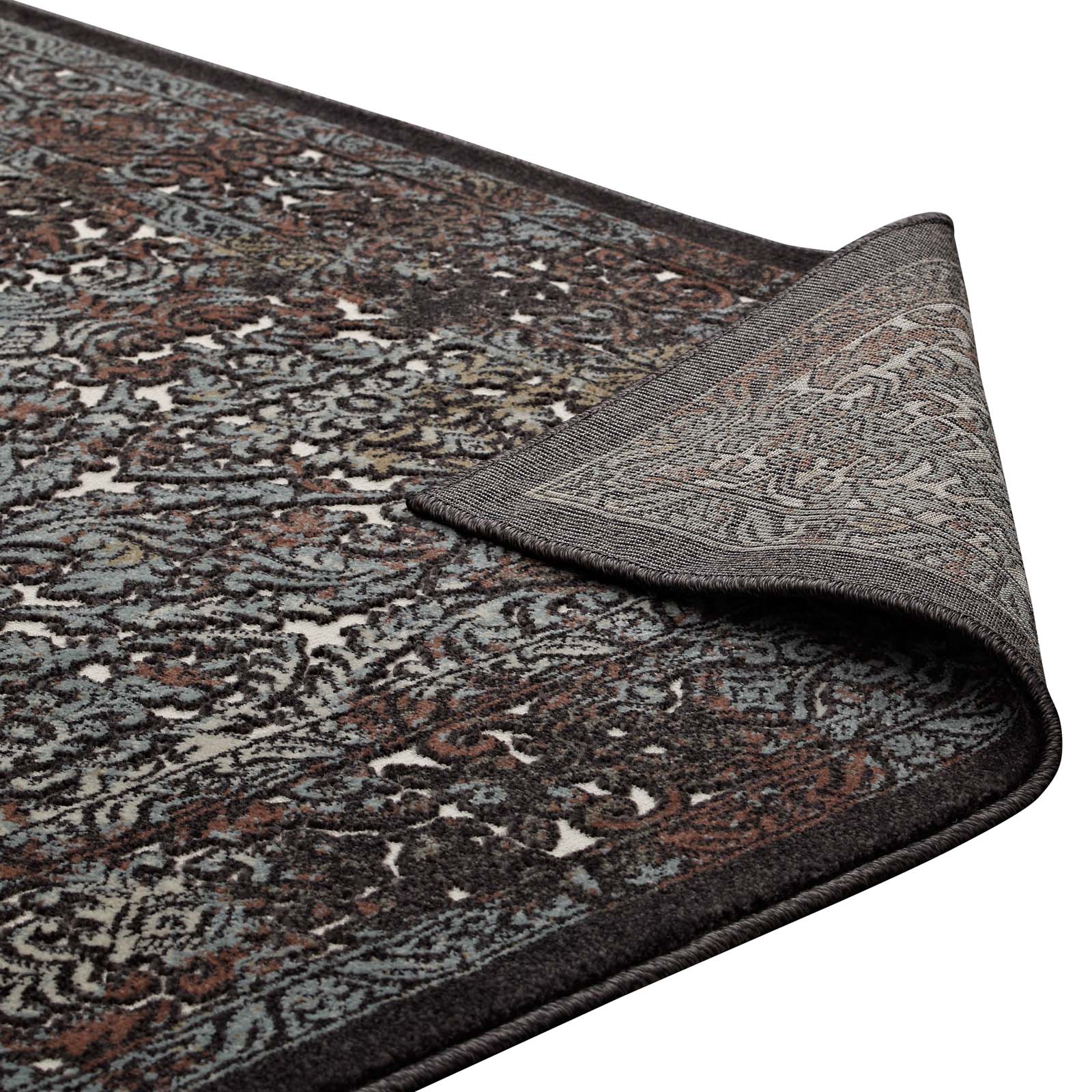 Modway Outlet Westia Ornate Turkish Vintage 8x10 Area Rug by Modway Living Room Rugs Dark Brown and Silver Blue - R-1101A-810