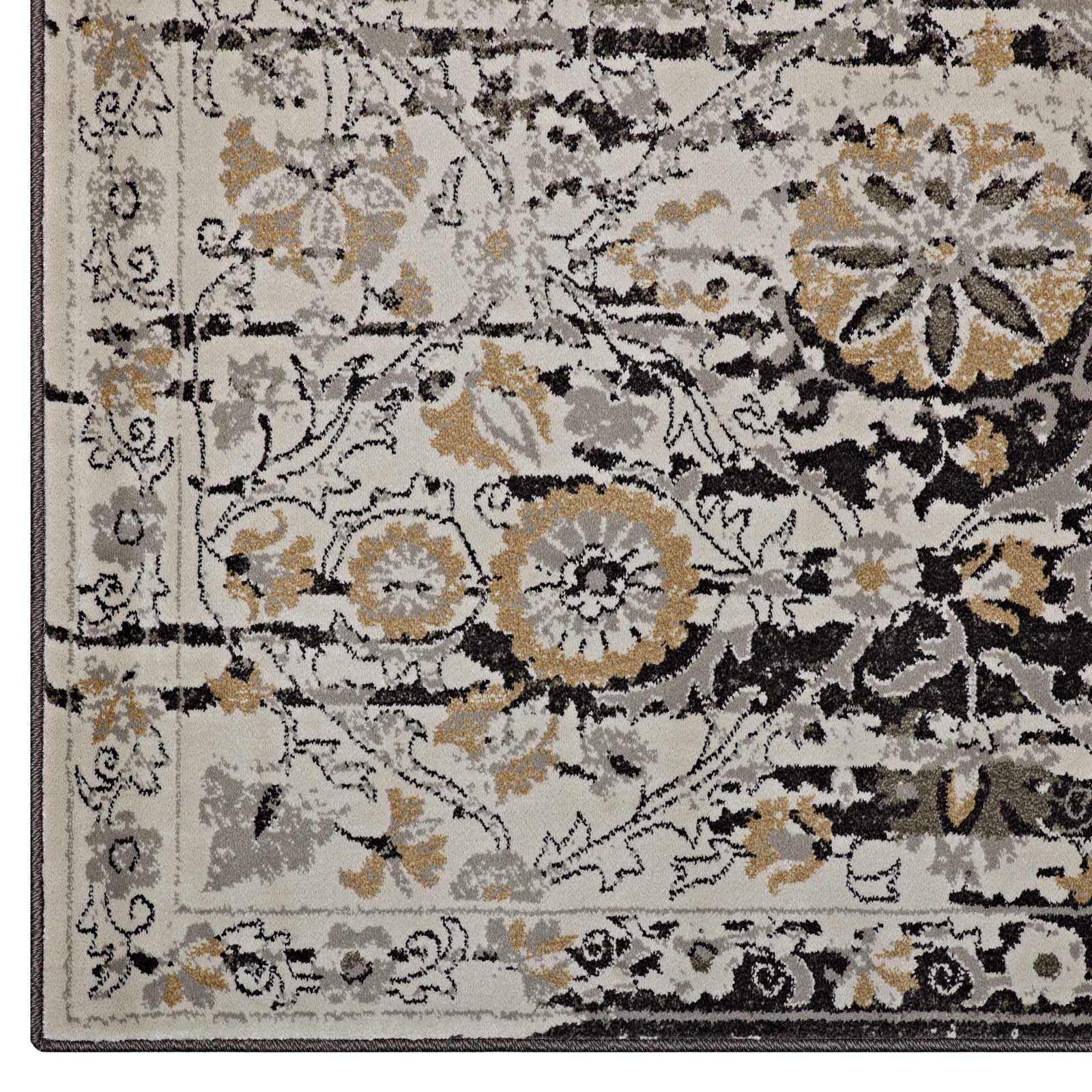 Modway Outlet Ganesa Distressed Diamond Floral Lattice 8x10 Area Rug by Modway Living Room Rugs Black and Beige - R-1108A-810