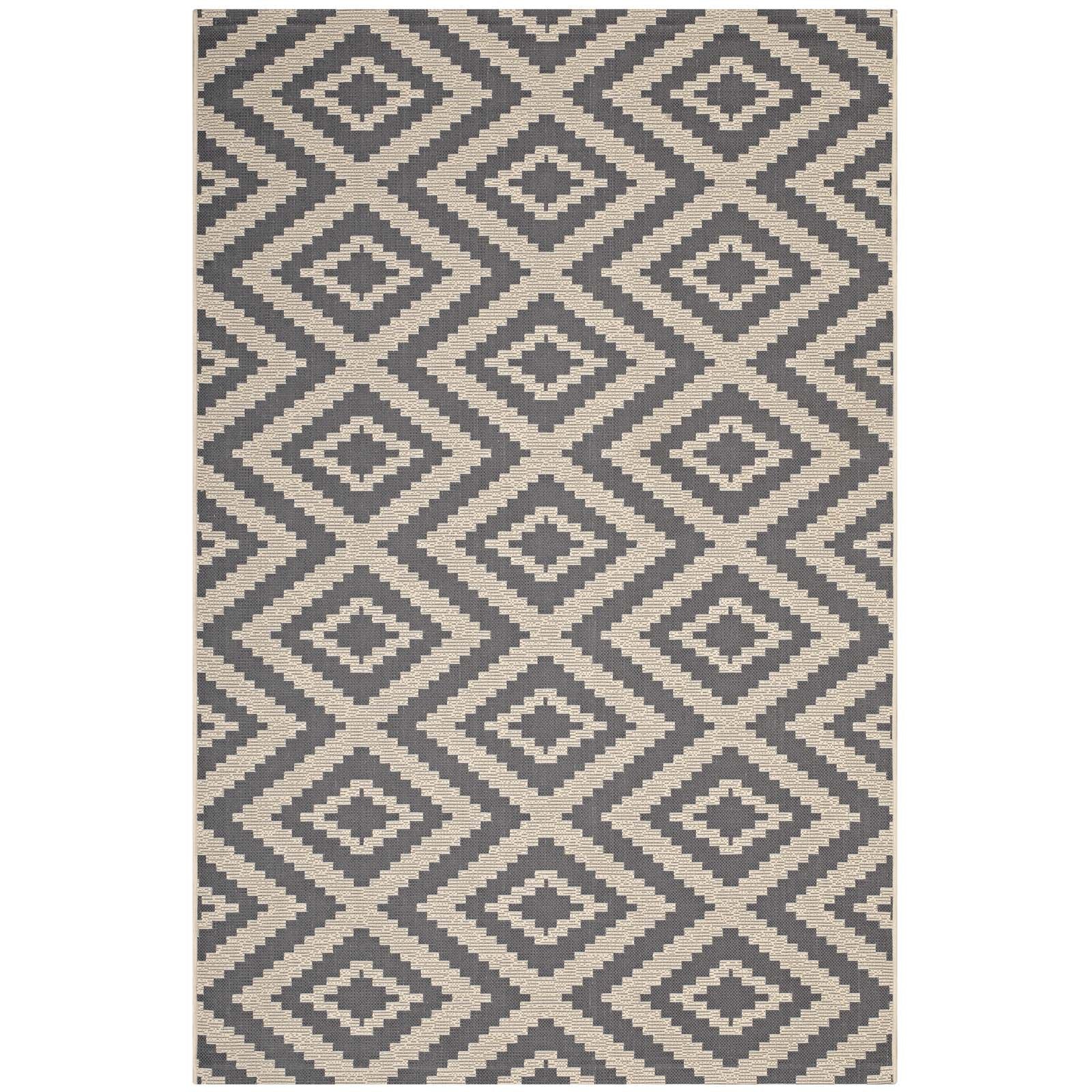 Modway Outlet Jagged Geometric Diamond Trellis Indoor and Outdoor 5x8 Area Rug by Modway Living Room Rugs Gray and Beige - R-1135A-58
