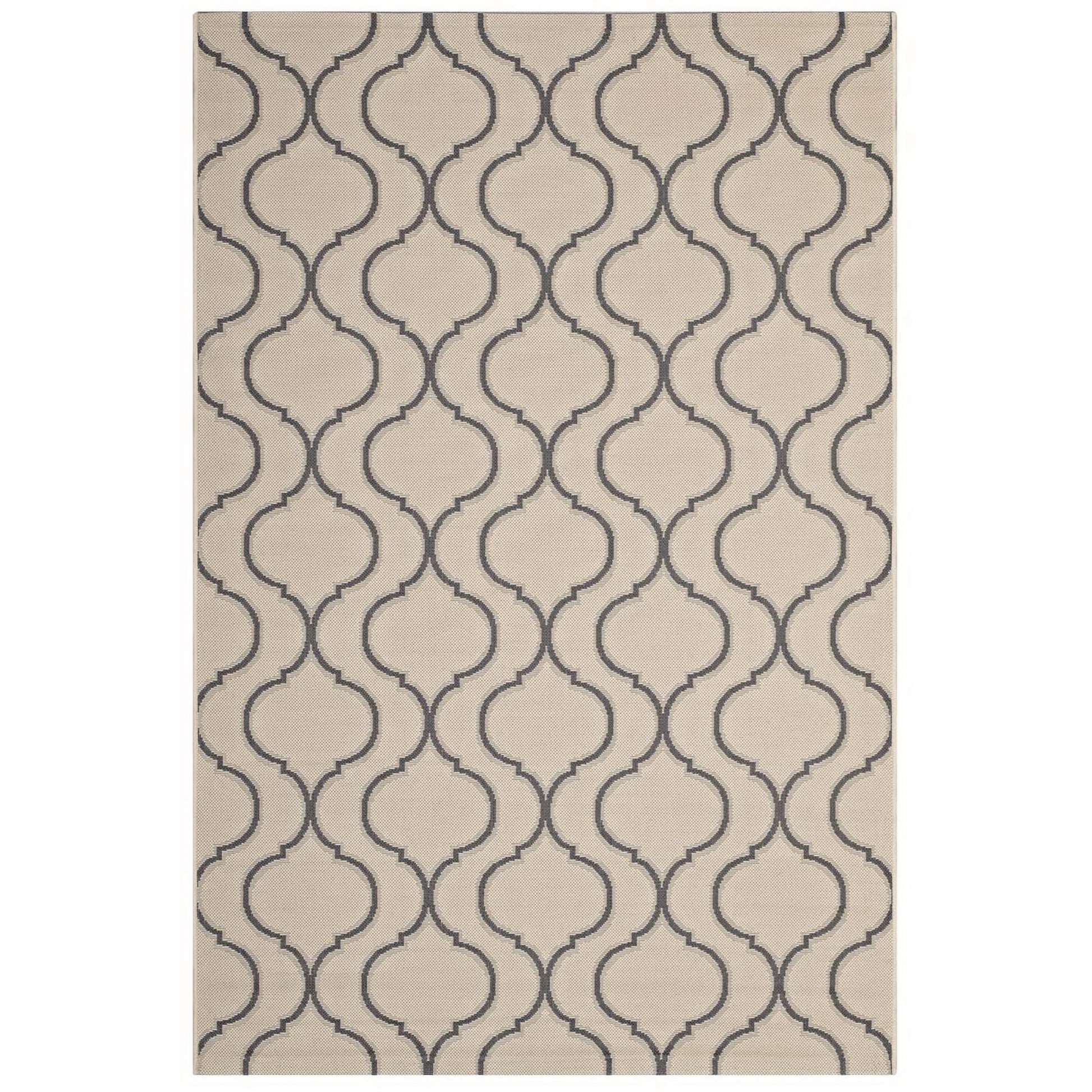 Modway Outlet Linza Wave Abstract Trellis Indoor and Outdoor 5x8 Area Rug by Modway Living Room Rugs Beige and Gray - R-1136A-58