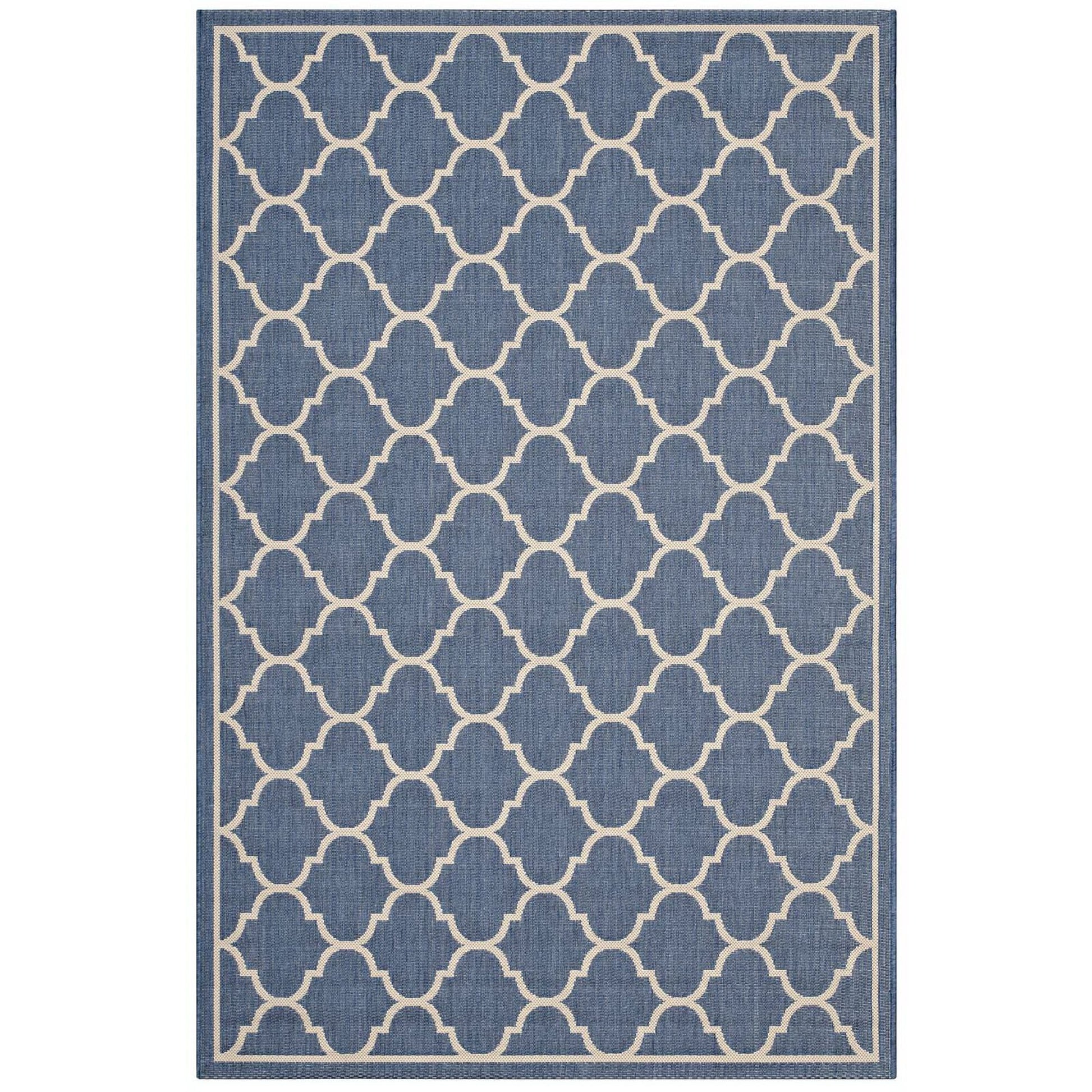 Modway Outlet Avena Moroccan Quatrefoil Trellis Indoor and Outdoor 8x10 Area Rug by Modway Living Room Rugs Blue and Beige - R-1137A-810