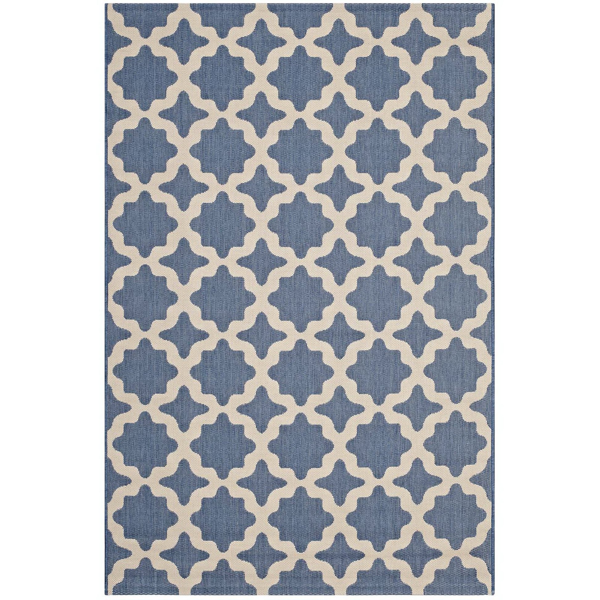 Modway Outlet Cerelia Moroccan Trellis Indoor and Outdoor 8x10 Area Rug by Modway Living Room Rugs Blue and Beige - R-1139C-810