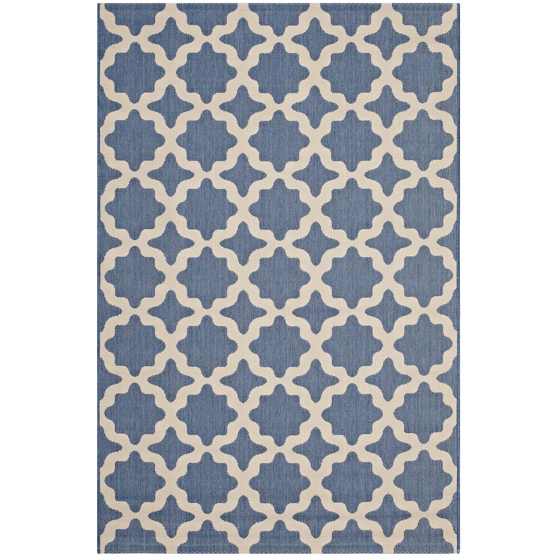 Modway Outlet Cerelia Moroccan Trellis Indoor and Outdoor 9x12 Area Rug by Modway Living Room Rugs Blue and Beige - R-1139C-912