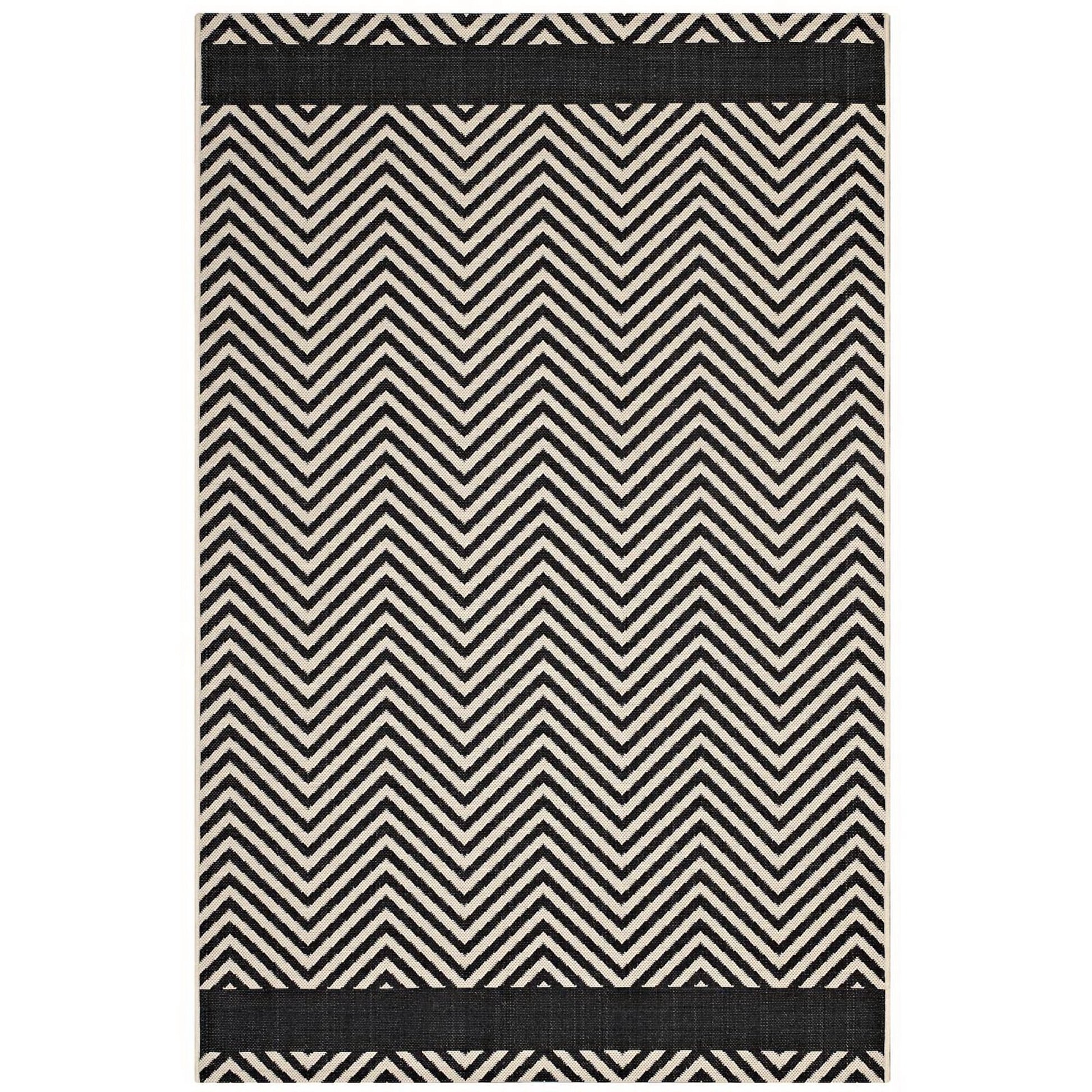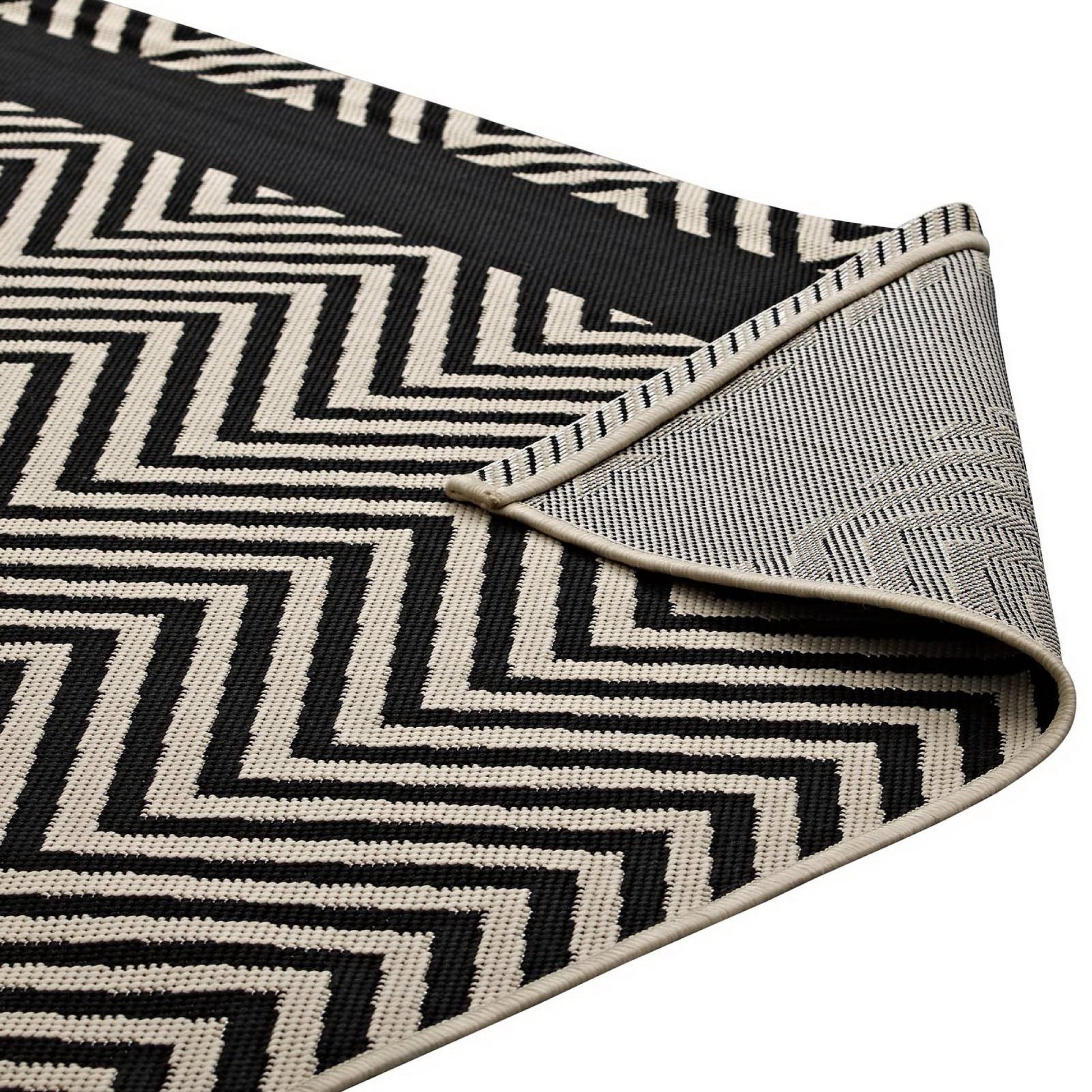 Modway Outlet Optica Chevron With End Borders Indoor and Outdoor 5x8 Area Rug by Modway Living Room Rugs Black and Beige - R-1141C-58