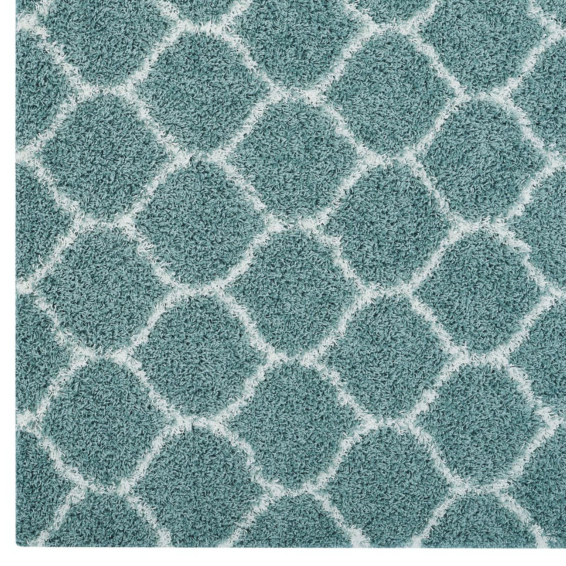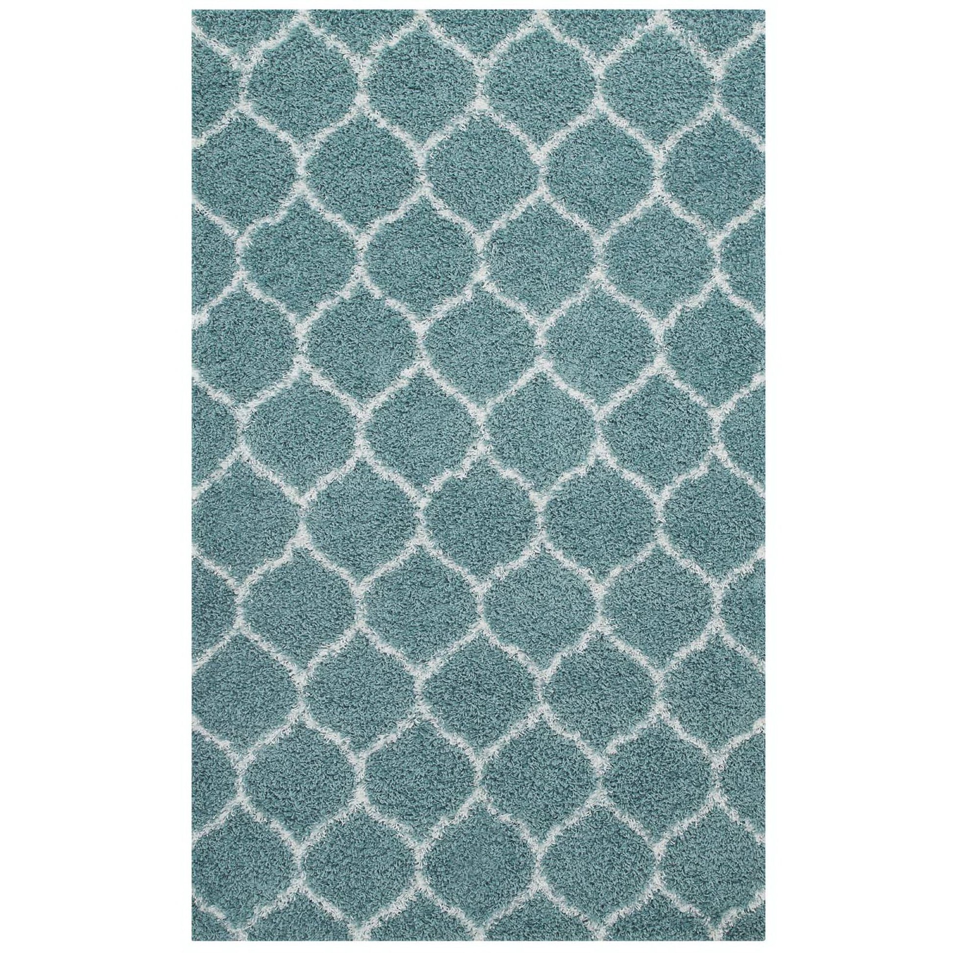 Modway Outlet Solvea Moroccan Trellis 5x8 Shag Area Rug by Modway Living Room Rugs Aqua Blue and Ivory - R-1143E-58