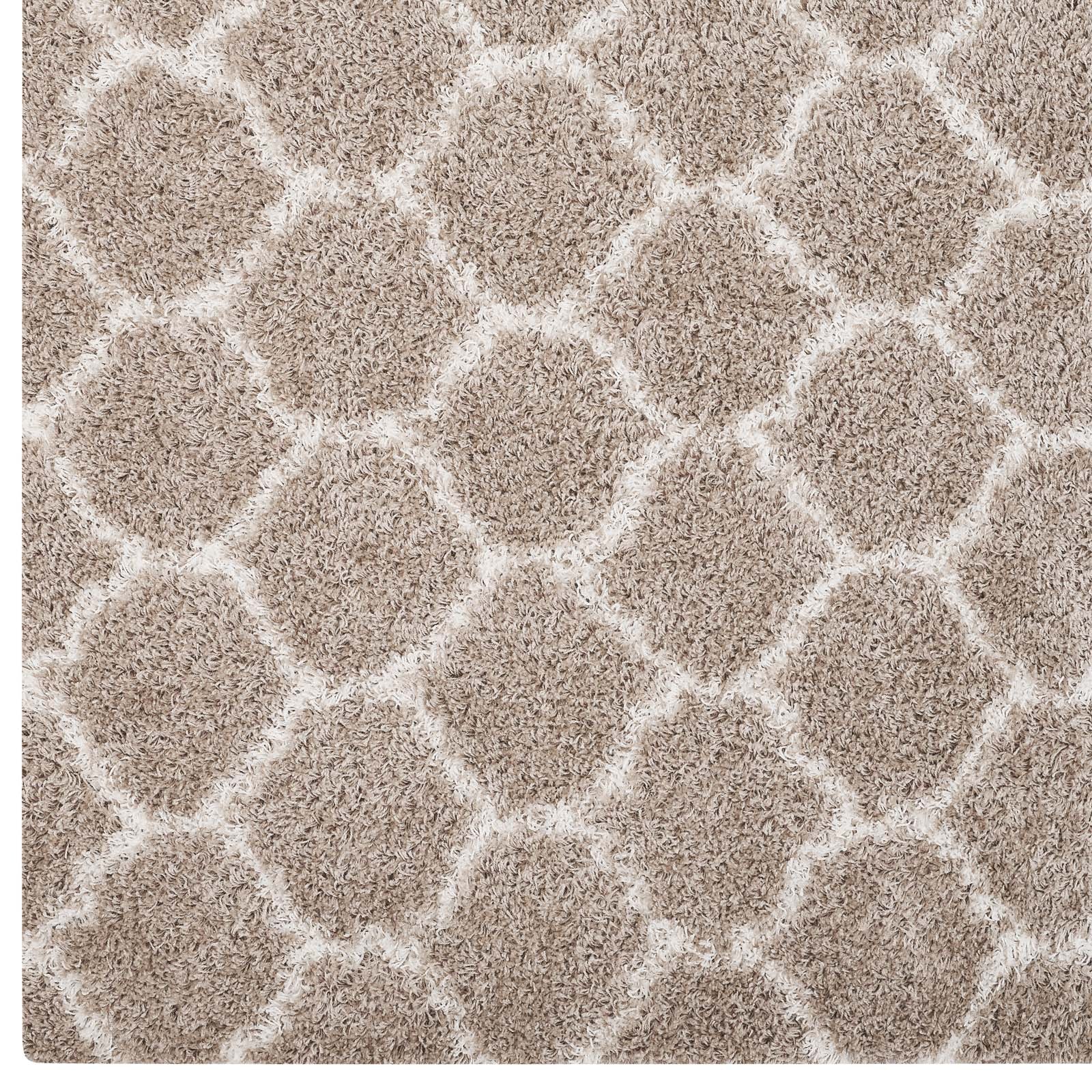 Modway Outlet Solvea Moroccan Trellis 8x10 Shag Area Rug by Modway Living Room Rugs Beige and Ivory - R-1143F-810