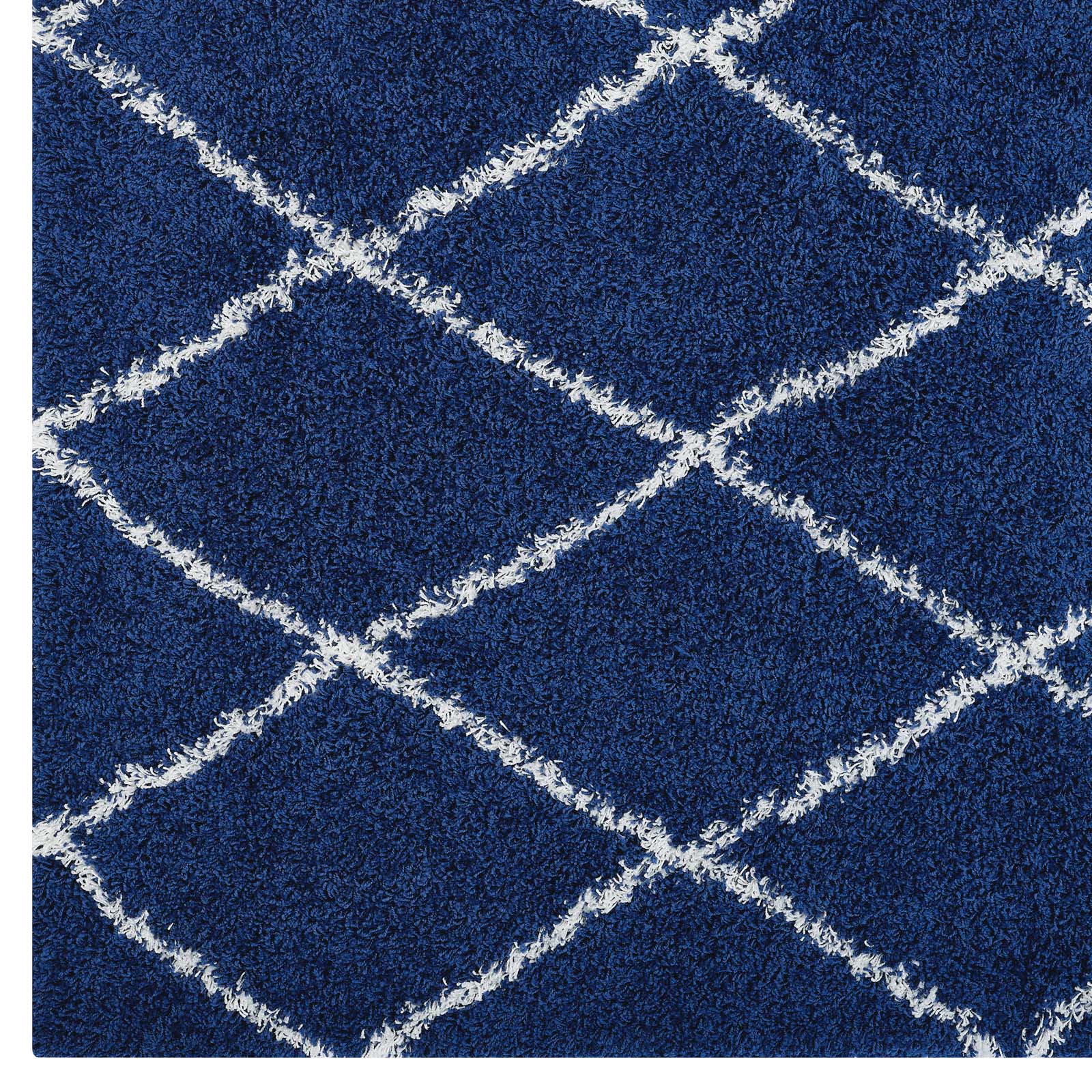 Modway Outlet Toryn Diamond Lattice 5x8 Shag Area Rug by Modway Living Room Rugs Navy and Ivory - R-1144A-58