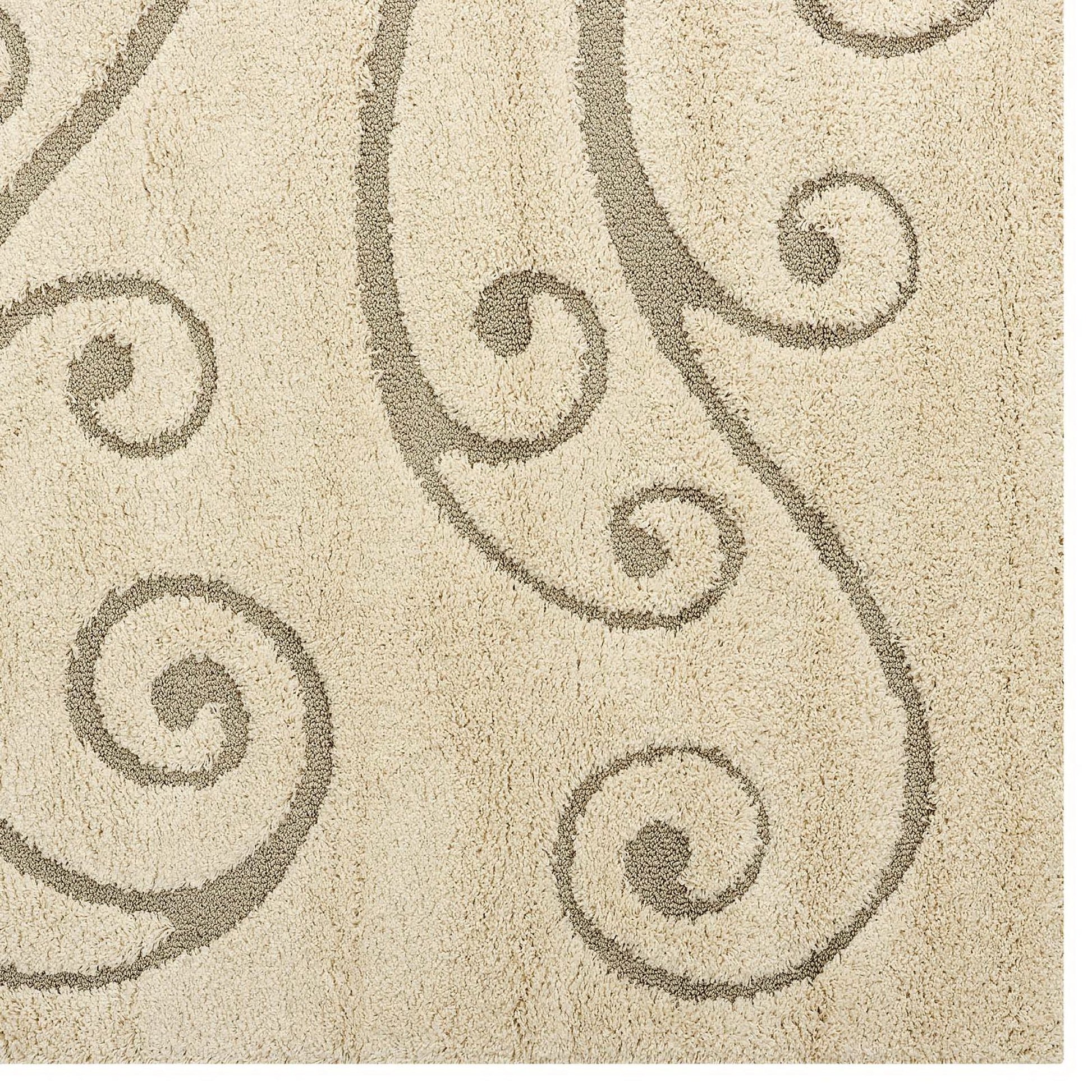 Modway Outlet Jubilant Sprout Scrolling Vine Shag 5x8 Area Rug by Modway Living Room Rugs Creame and Beige - R-1148A-58