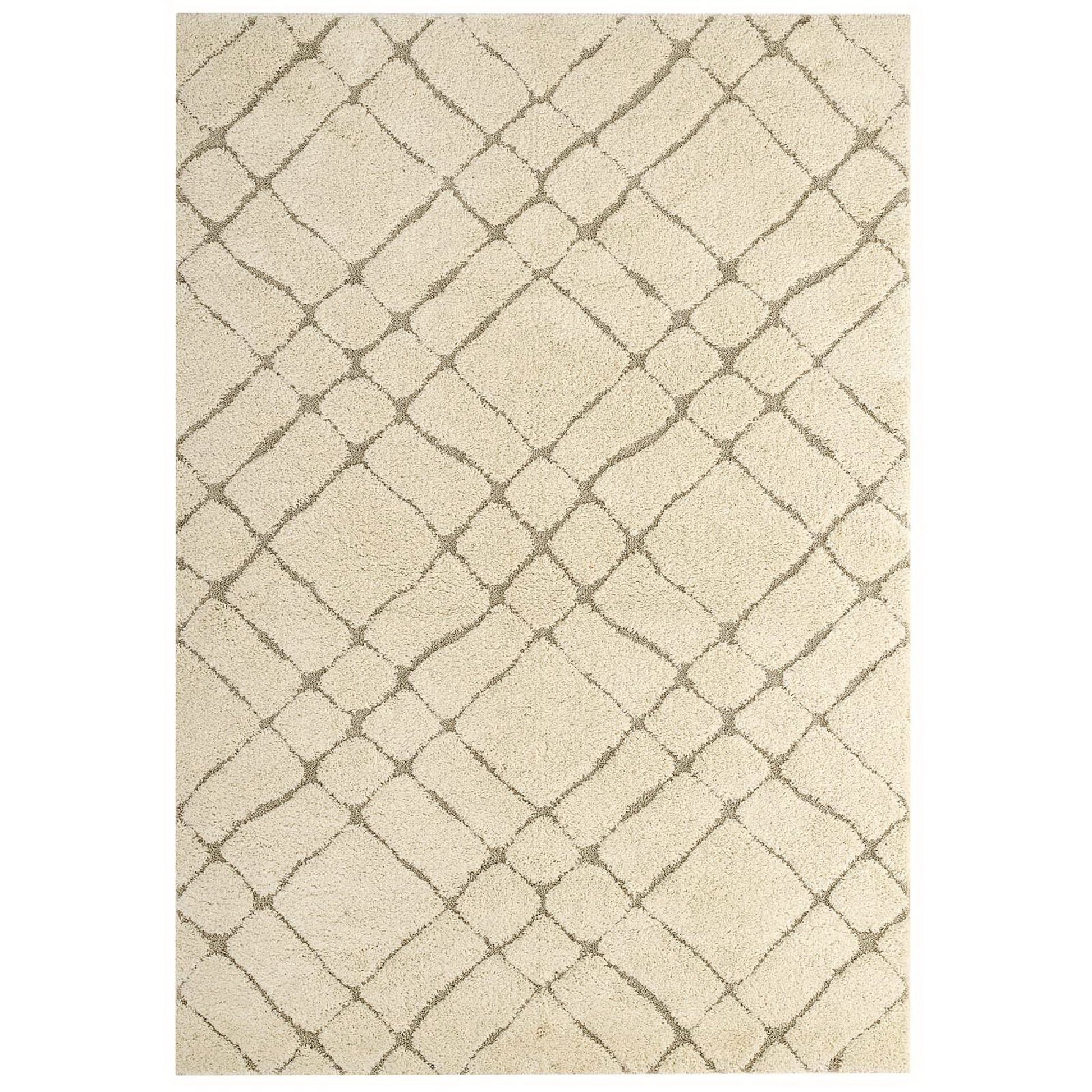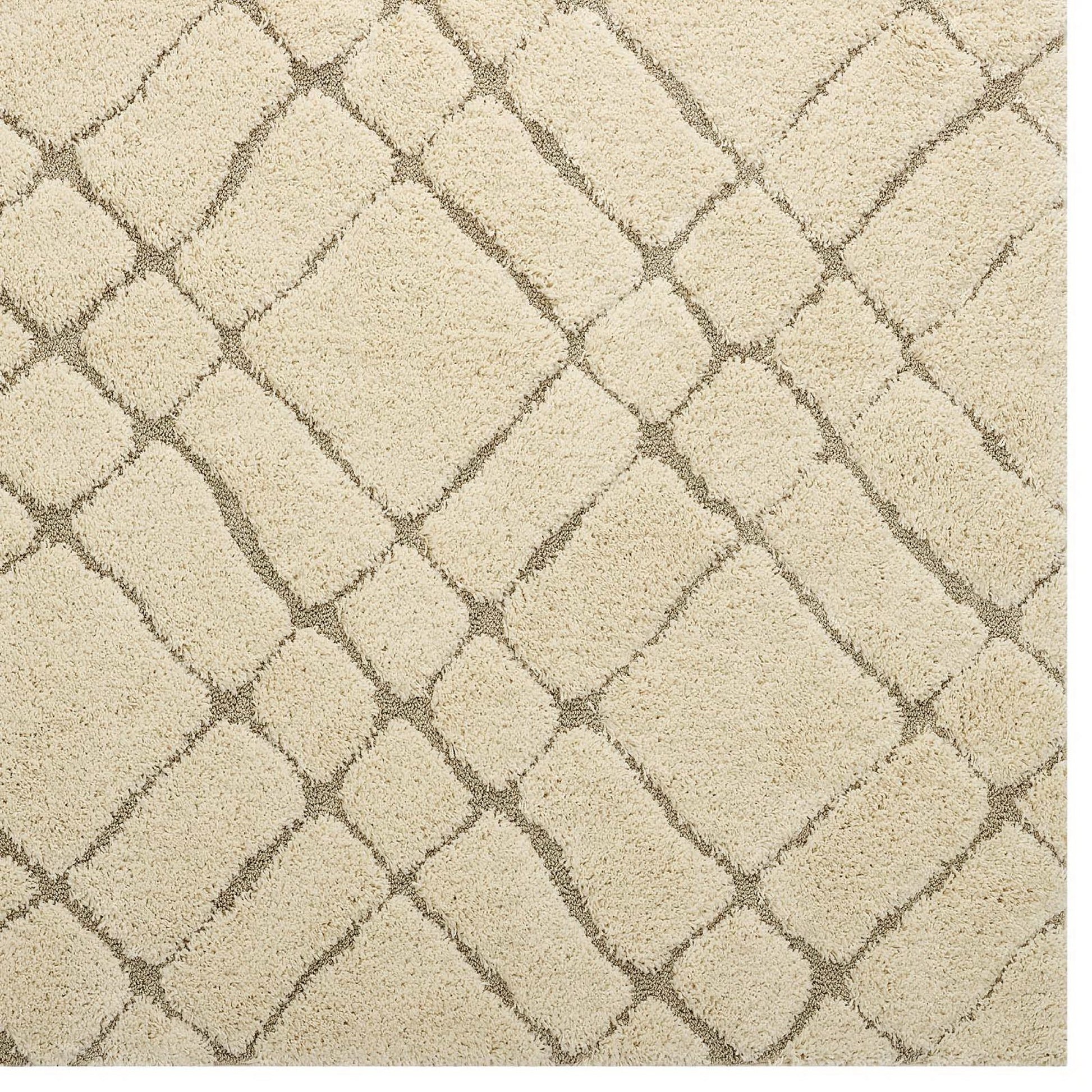 Modway Outlet Jubilant Verona Abstract Geometric Shag 5x8 Area Rug by Modway Living Room Rugs Creame and Beige - R-1149A-58
