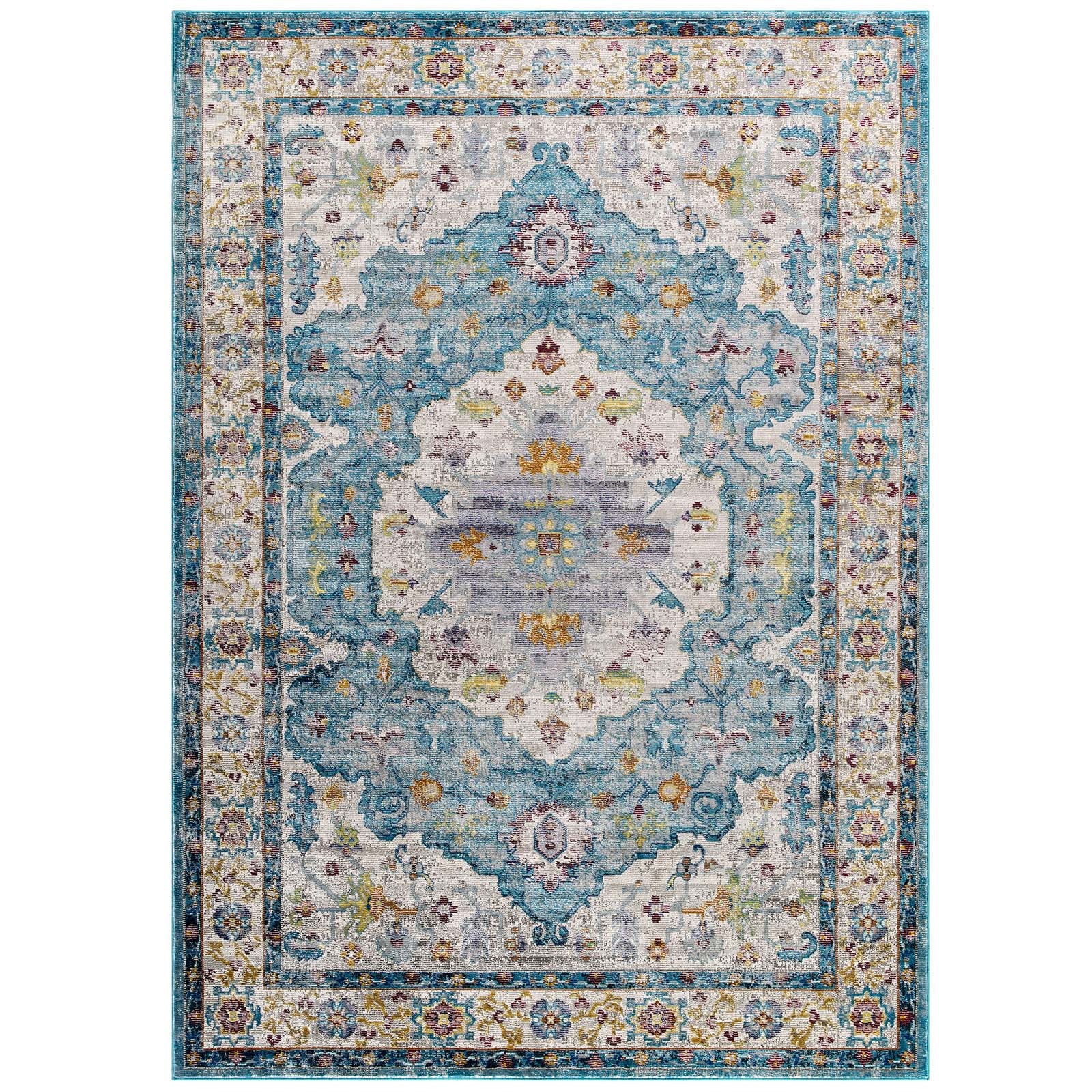 Modway Outlet Success Anisah Distressed Floral Vintage Medallion 4x6 Area Rug by Modway Living Room Rugs Light Blue Ivory Yellow Orange - R-1163B-46