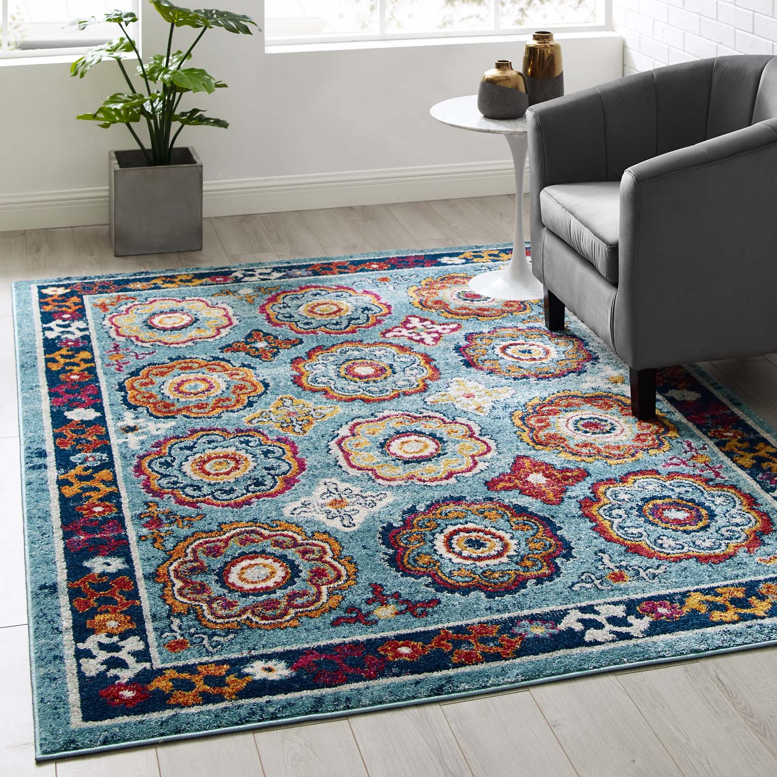 Modway Outlet Entourage Odile Distressed Floral Moroccan Trellis 5x8 Area Rug by Modway Living Room Rugs Blue Red Orange Yellow - R-1168B-58