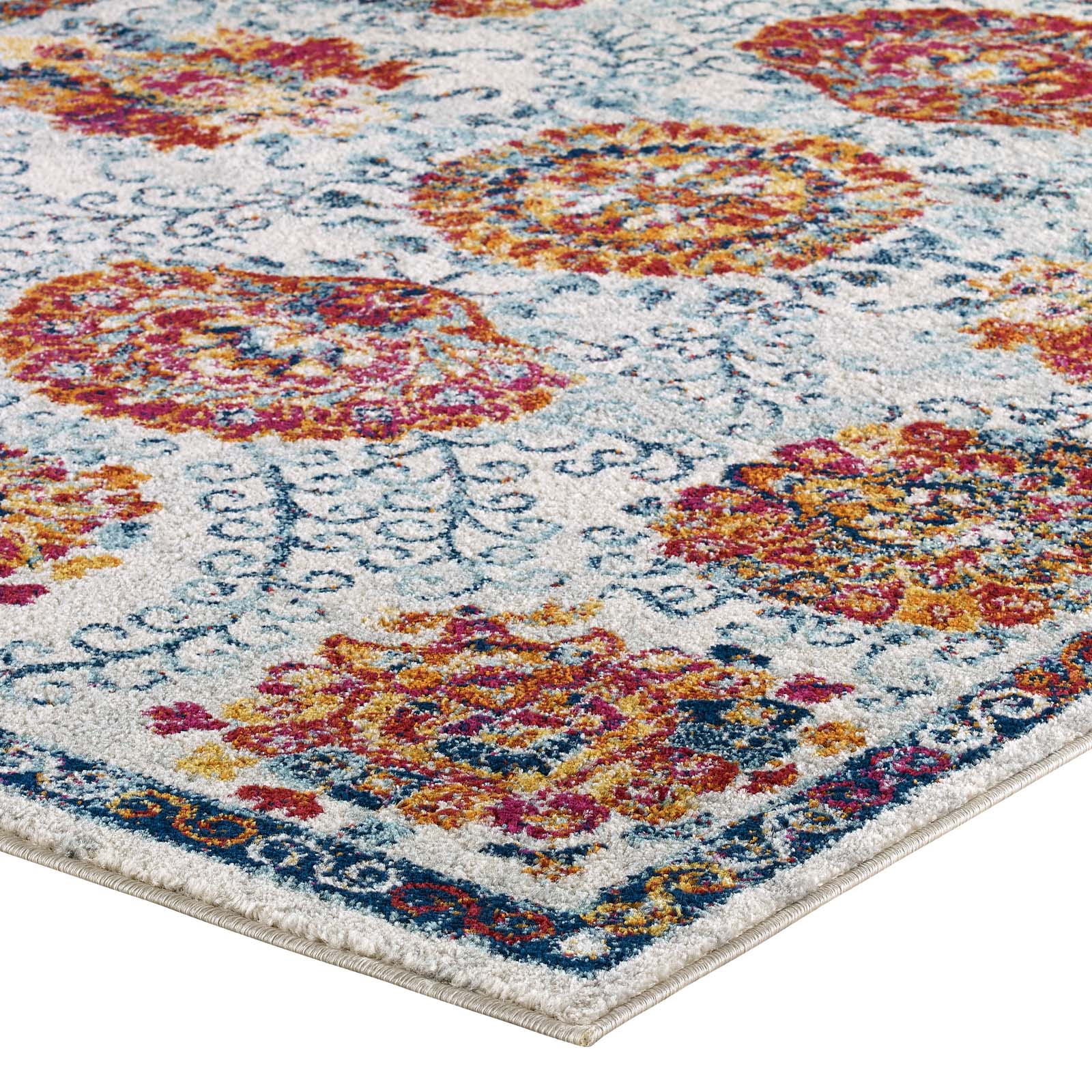 Modway Outlet Entourage Kensie Distressed Floral Moroccan Trellis 5x8 Area Rug by Modway Living Room Rugs Ivory Blue Red Orange Yellow - R-1173A-58