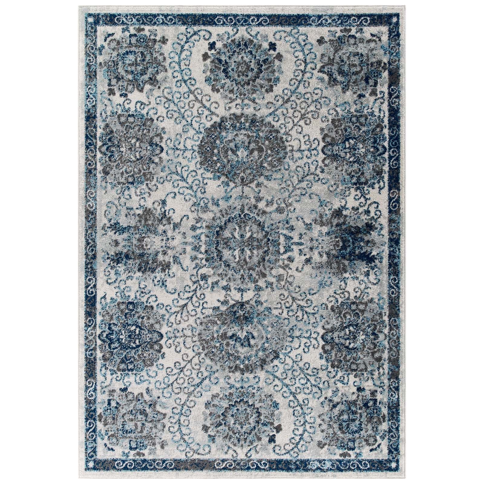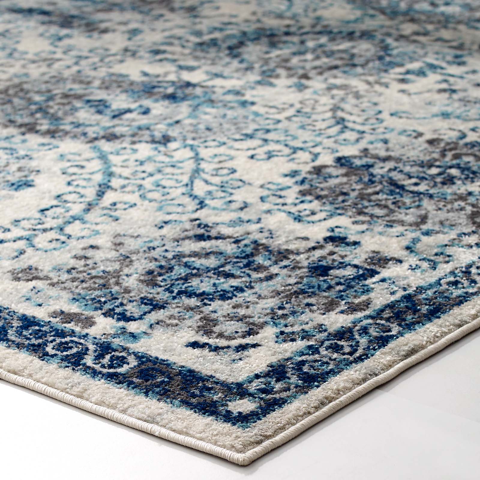 Modway Outlet Entourage Kensie Distressed Floral Moroccan Trellis 8x10 Area Rug by Modway Living Room Rugs Ivory and Blue - R-1173B-810