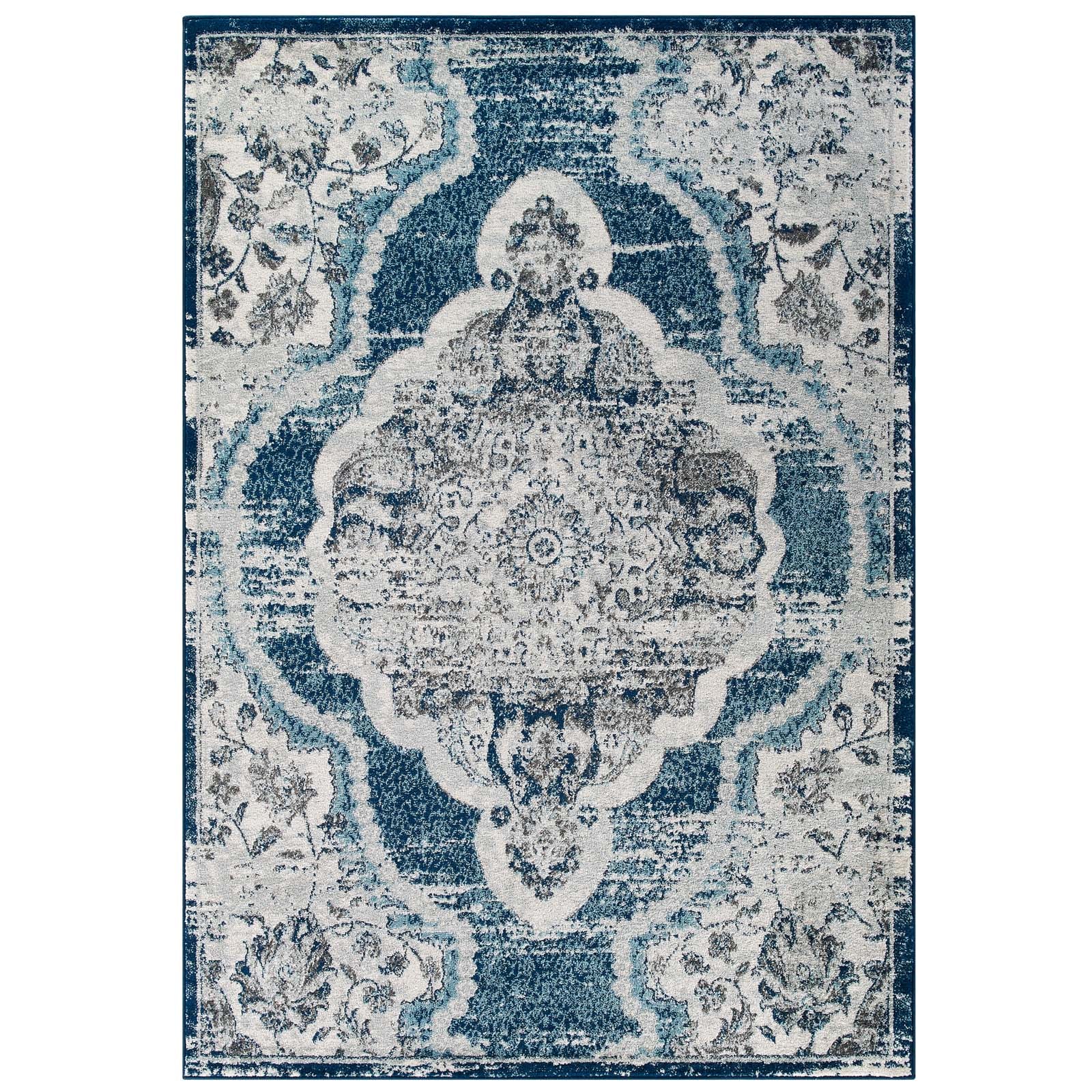Modway Outlet Entourage Malia Distressed Vintage Floral Vintage Medallion 8x10 Area Rug by Modway Living Room Rugs Ivory and Blue - R-1175B-810