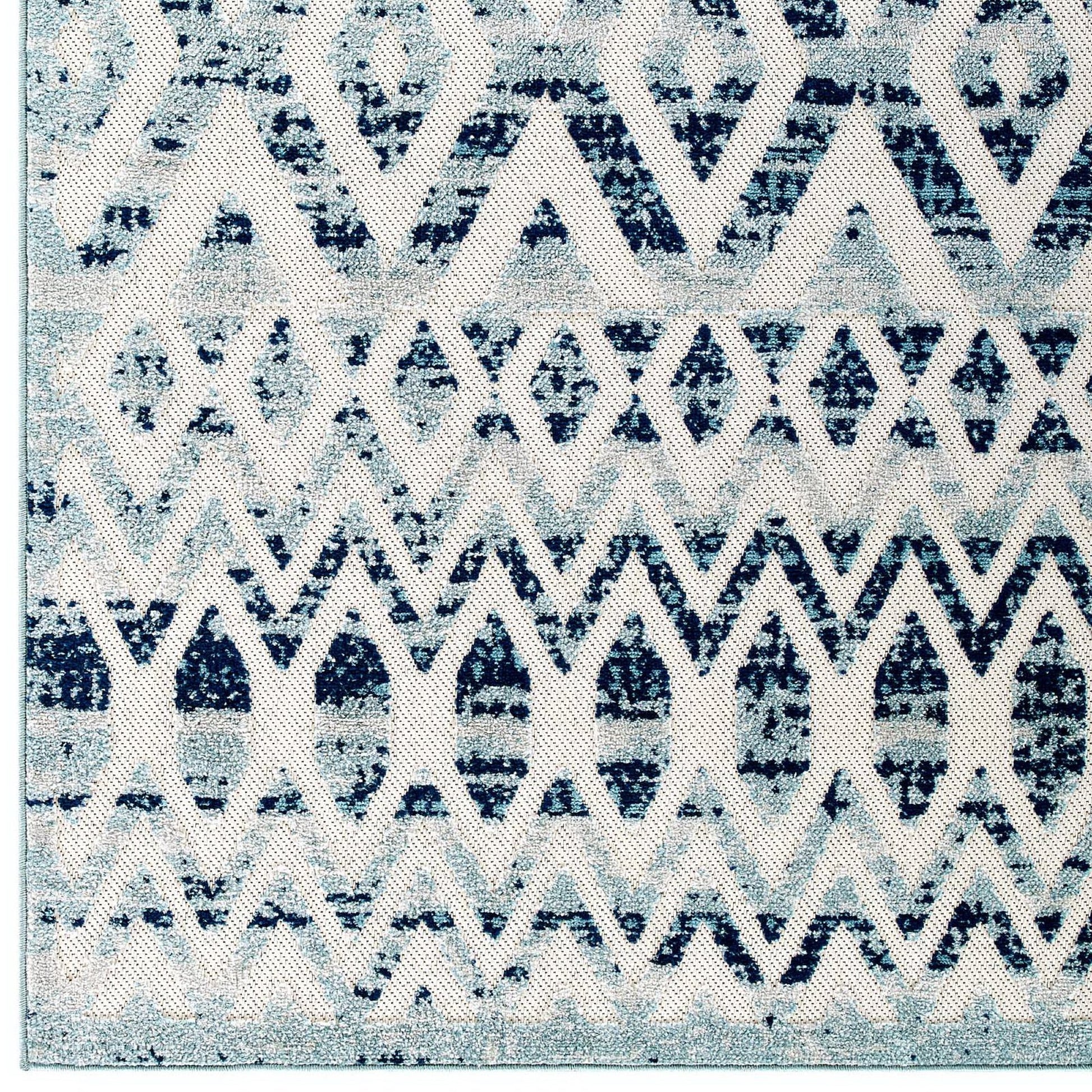 Modway Outlet Reflect Tamako Diamond and Chevron Moroccan Trellis 5x8 Indoor / Outdoor Area Rug by Modway Living Room Rugs Ivory and Blue - R-1177A-58