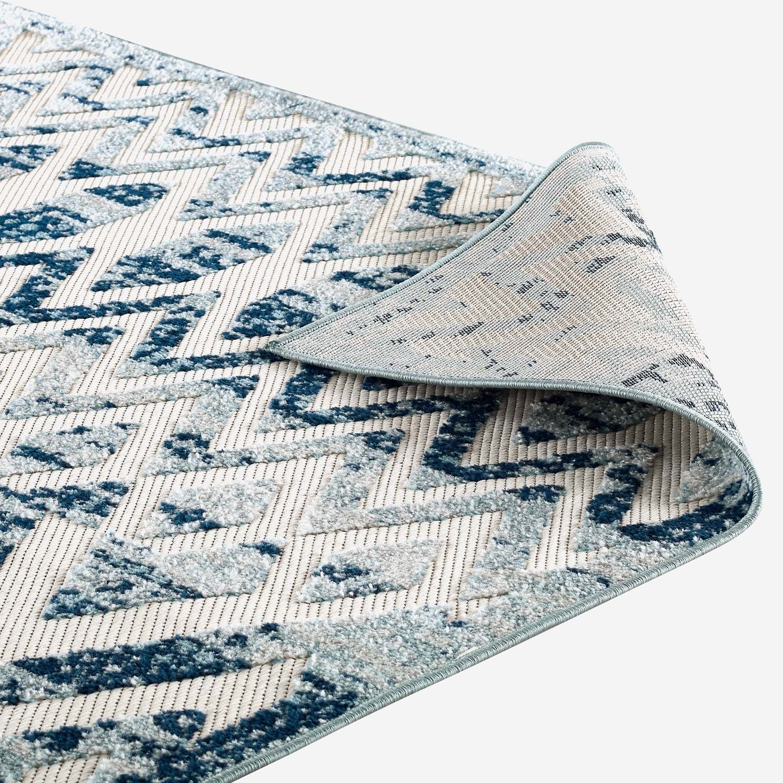 Modway Outlet Reflect Tamako Diamond and Chevron Moroccan Trellis 8x10 Indoor / Outdoor Area Rug by Modway Living Room Rugs Ivory and Blue - R-1177A-810