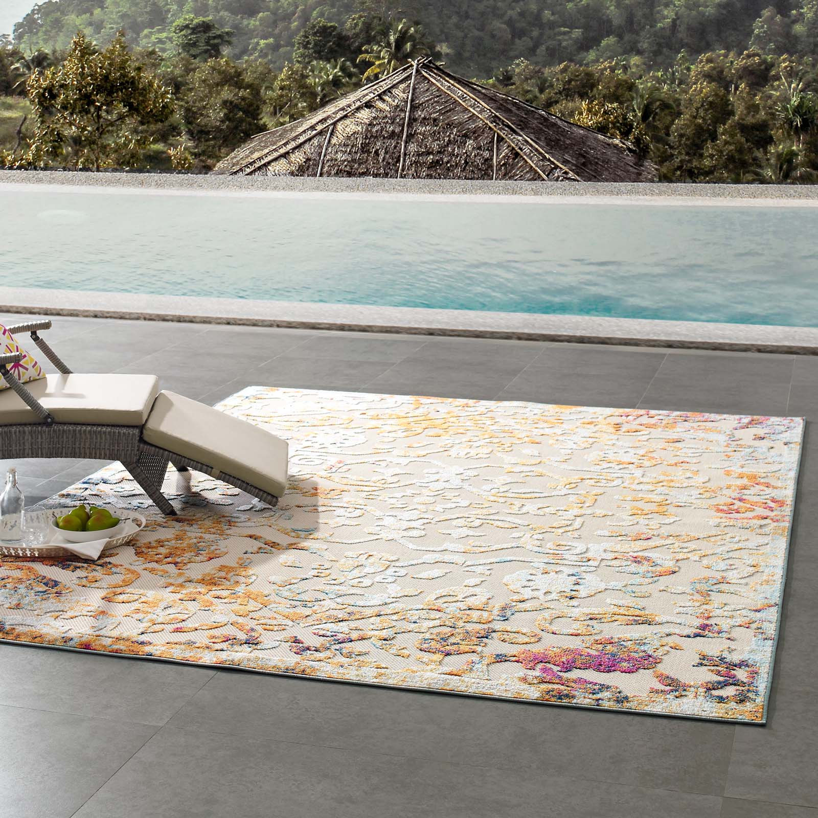 Modway Outlet Reflect Primrose Ornate Floral Lattice 8x10 Indoor/Outdoor Area Rug by Modway Living Room Rugs Ivory Light Blue Multicolored - R-1179A-810