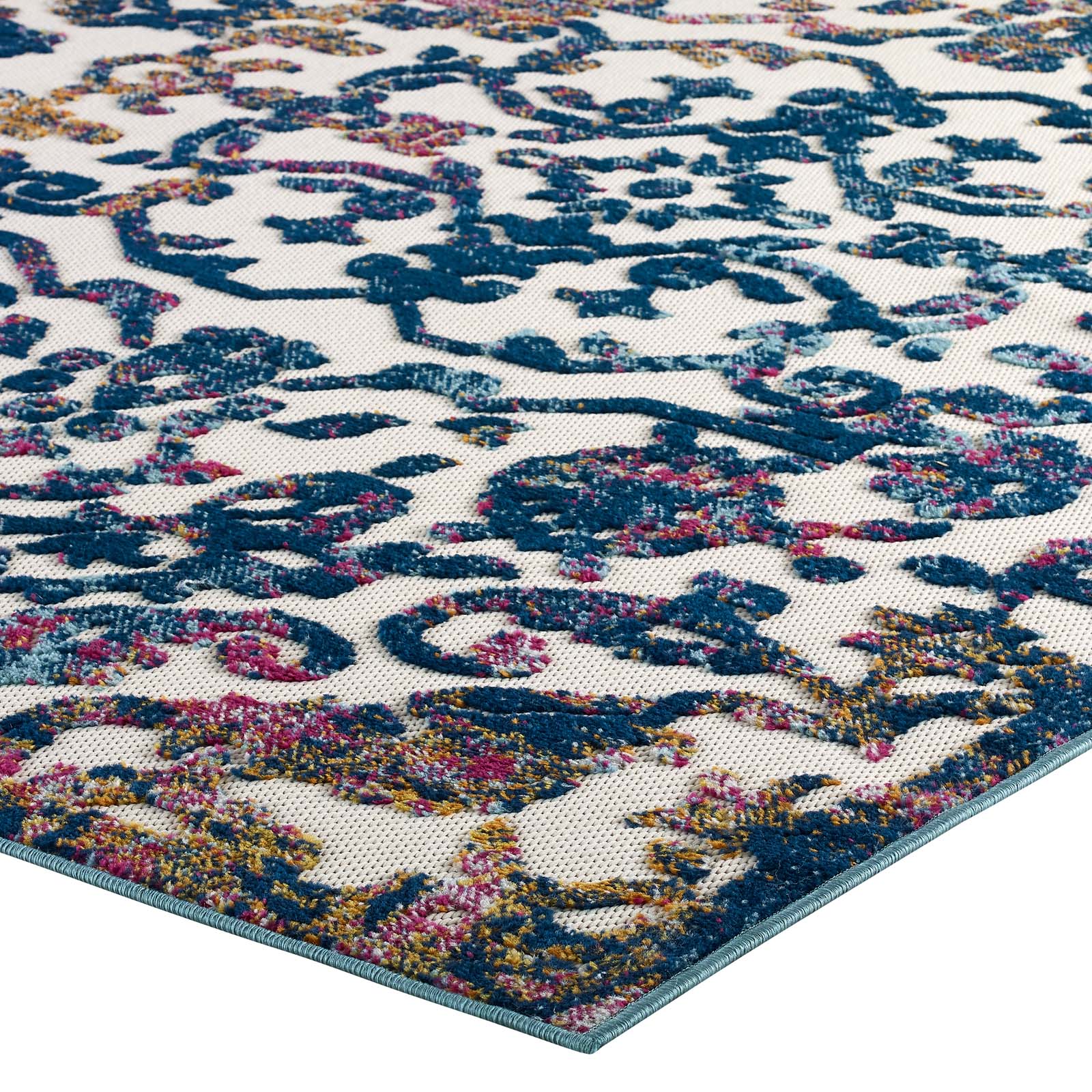 Modway Outlet Reflect Primrose Ornate Floral Lattice 8x10 Indoor/Outdoor Area Rug by Modway Living Room Rugs Ivory Dark Blue Multicolored - R-1179B-810