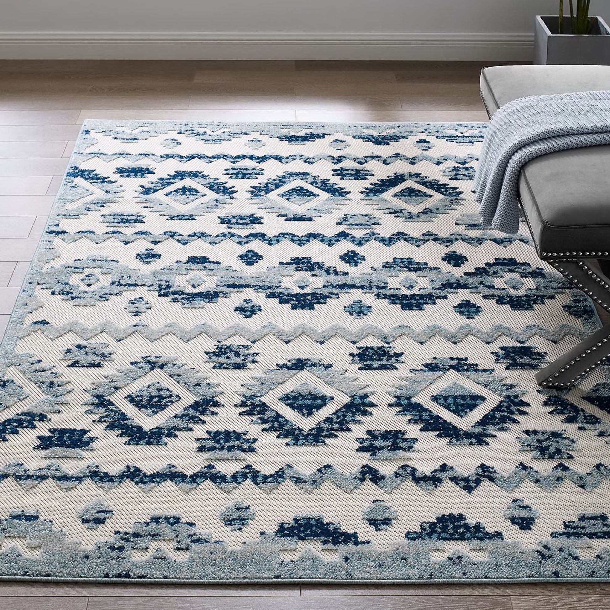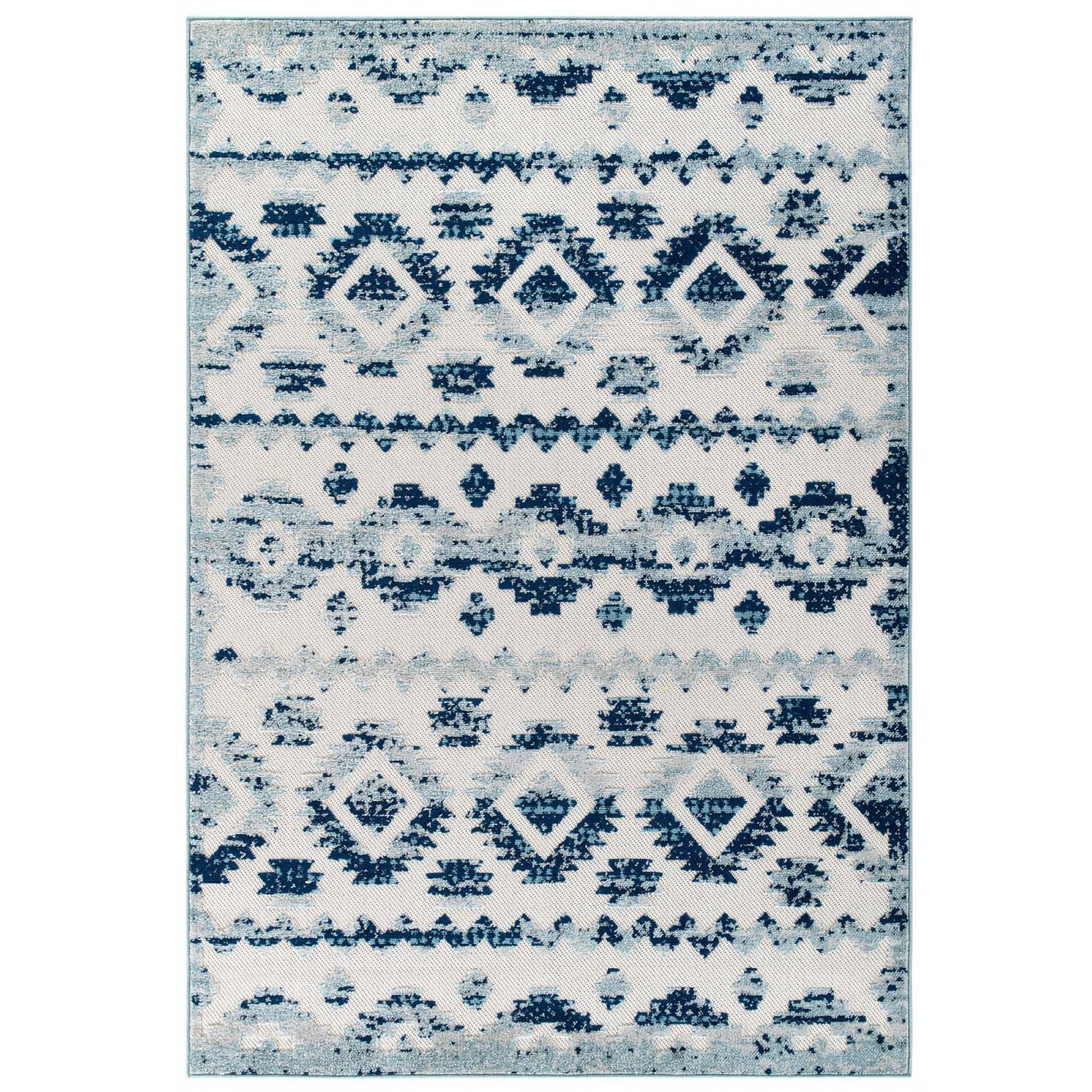 Modway Outlet Reflect Takara Abstract Diamond Moroccan Trellis 5x8 Indoor and Outdoor Area Rug by Modway Living Room Rugs Ivory and Blue - R-1180A-58