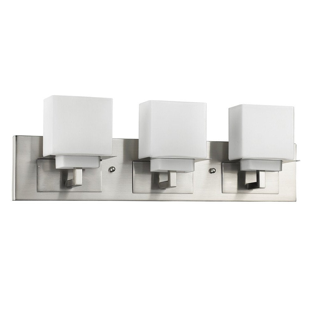 Rampart 3-Light Satin Nickel Vanity Light With Etched Glass Shades
