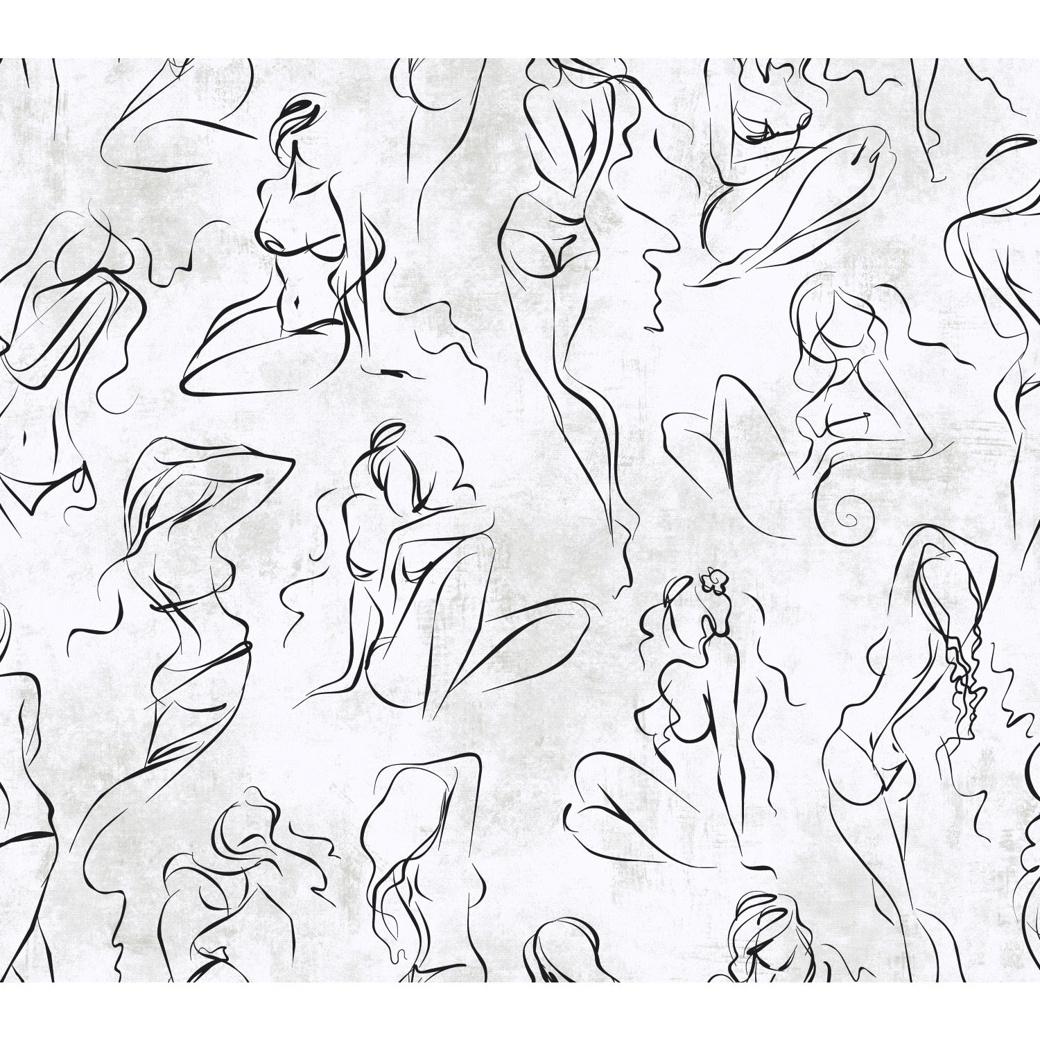 Use:Subtle ink sketch line drawings of the female form create an allover graphic print that any artist could be proud of. Use this contemporary art masterpiece for an accent wall and be amazed at how discreet and subtle the styling and gentle color palette really is. Made in USA