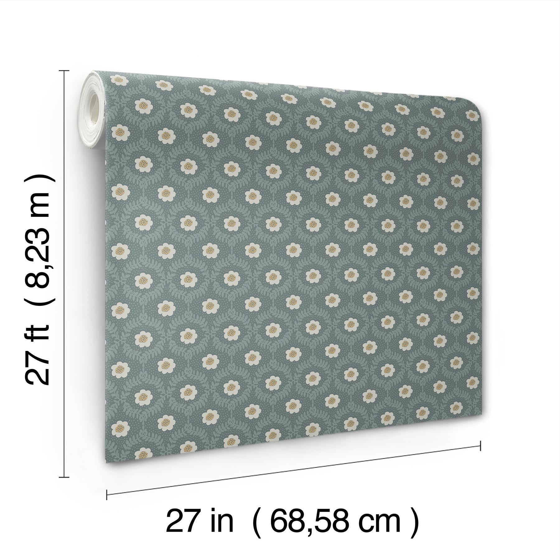Use:Simple flowers are framed by delicate leaves, with tiny metallic dots filling the background on Rifle Paper Co.?s Emma wallpaper. Illustrated in shades of teal, golden taupe, blue, and silver. This Emma Wallpaper measures approximately 27 inches wide by 27 feet long, measuring approximately 60.8 square feet per roll. The world of Rifle Paper Co. is in full bloom with their third wallpaper collection. With statement floral prints, detailed illustrated designs, and metallic accents, this collection is designed to bring beauty to every room.