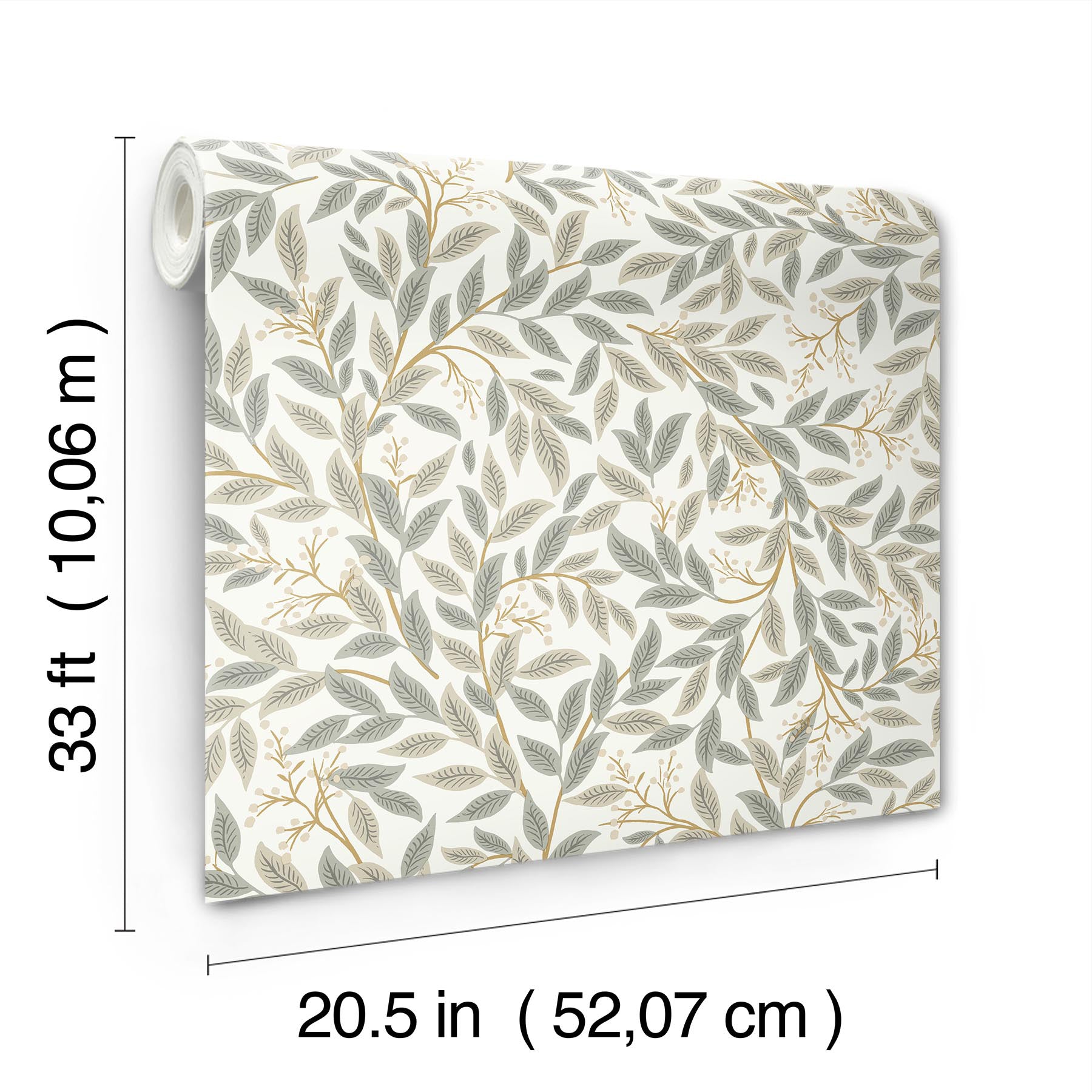 Use:Lush and verdant, Willowberry features vines of greenery that are dotted with metallic berries. Illustrated in grey and taupe accented with silver. This Willowberry Wallpaper measures approximately 20.5 inches wide by 33 feet long, measuring approximately 56.4 square feet per roll. The world of Rifle Paper Co. is in full bloom with their third wallpaper collection. With statement floral prints, detailed illustrated designs, and metallic accents, this collection is designed to bring beauty to every room.