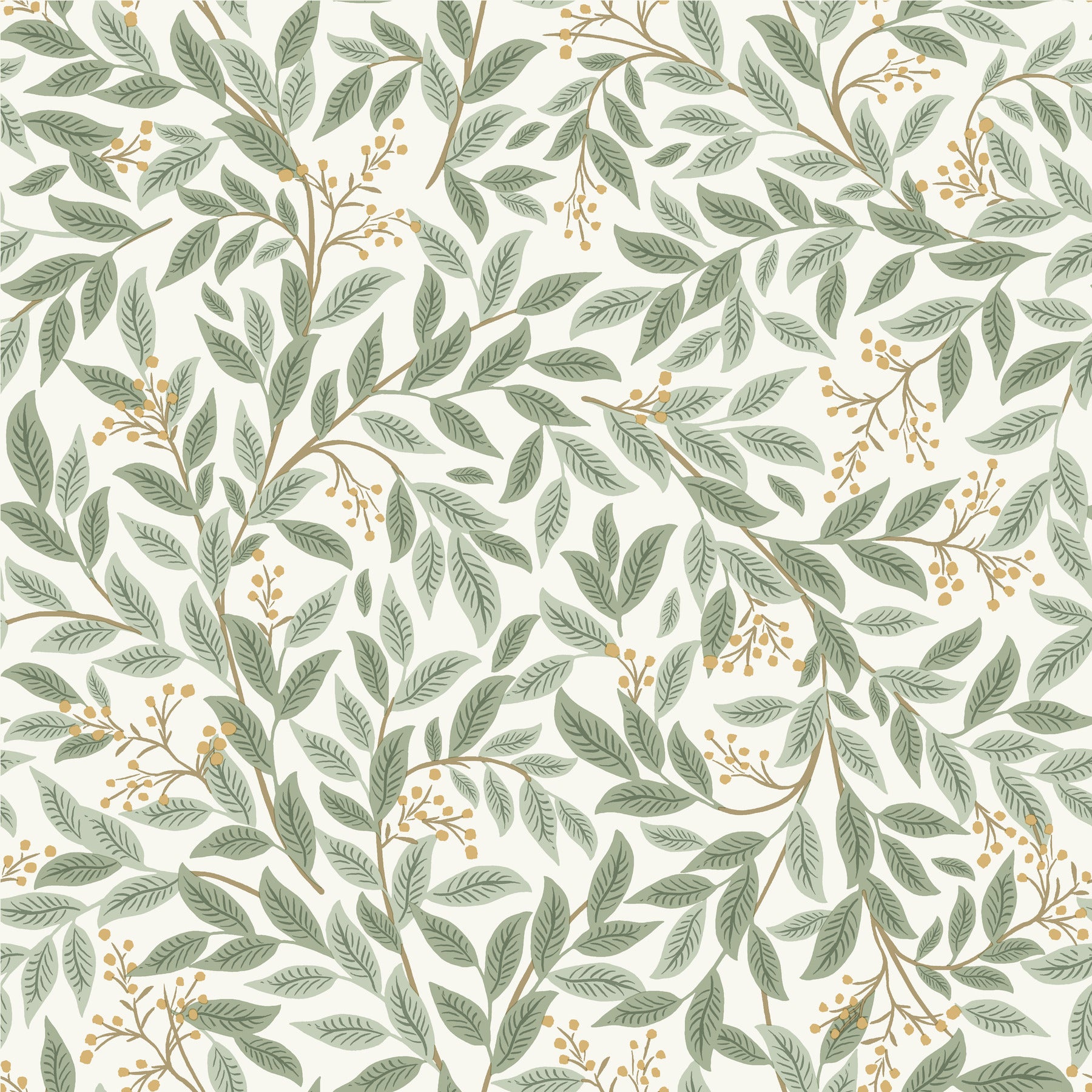 Use:Lush and verdant, Willowberry features vines of greenery that are dotted with metallic berries. Illustrated in shades of sage green, light brown, gold, and cream. This Willowberry Wallpaper measures approximately 20.5 inches wide by 33 feet long, measuring approximately 56.4 square feet per roll. The world of Rifle Paper Co. is in full bloom with their third wallpaper collection. With statement floral prints, detailed illustrated designs, and metallic accents, this collection is designed to bring beauty to every room.