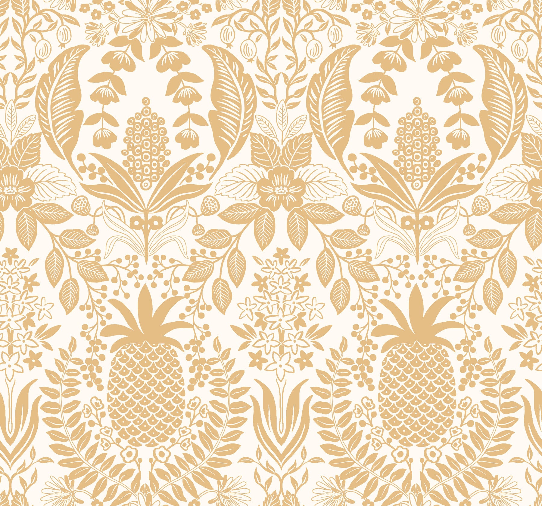 York Wallcoverings Rifle Paper Co. 3rd Edition Pineapple Damask Gold Wallpaper Traditional Novelty Metallics - RF7482