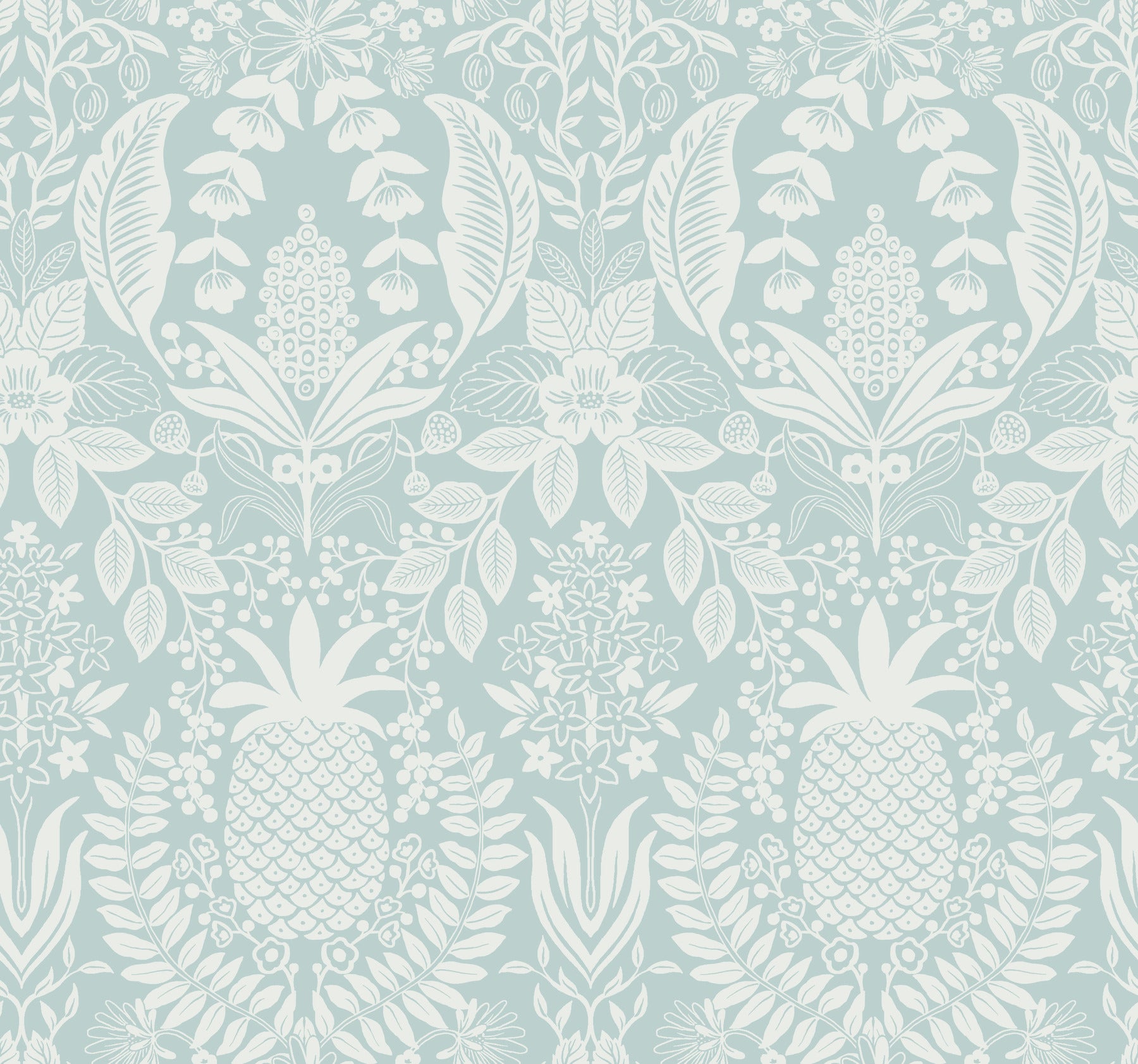 York Wallcoverings Rifle Paper Co. 3rd Edition Pineapple Damask Light Blue Wallpaper Traditional Novelty Blues - RF7484