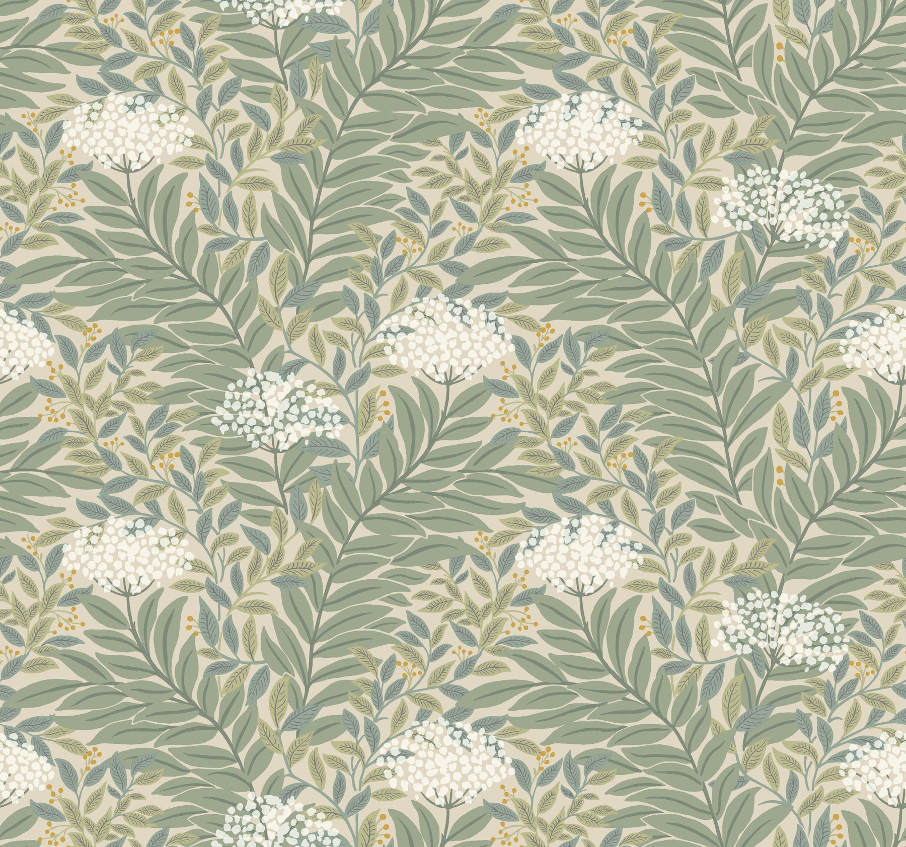 York Wallcoverings Rifle Paper Co. 3rd Edition Highgrove Linen Wallpaper Traditional Florals Greens - RF7502