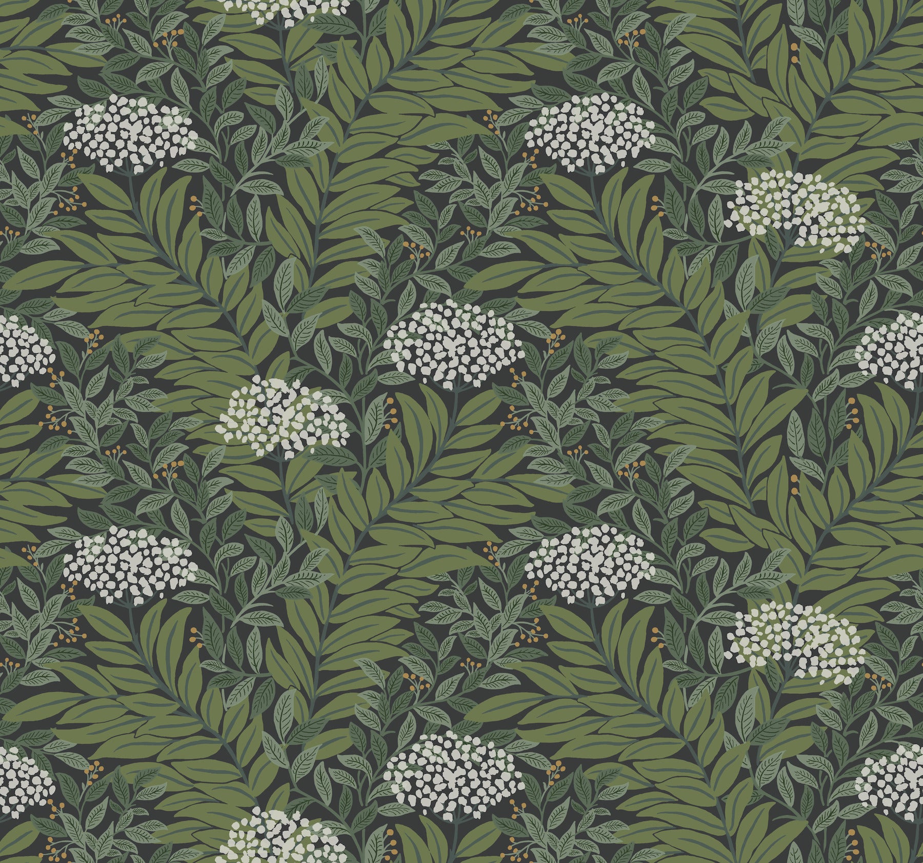 Use:Highgrove is a traditional design featuring layered leaves that create a lush tapestry of greenery, accented by sprays of Queen Anne?s Lace. Illustrated in shades of white, green, and black. This Highgrove Wallpaper measures approximately 27 inches wide by 27 feet long, measuring approximately 60.8 square feet per roll. The world of Rifle Paper Co. is in full bloom with their third wallpaper collection. With statement floral prints, detailed illustrated designs, and metallic accents, this collection is designed to bring beauty to every room.